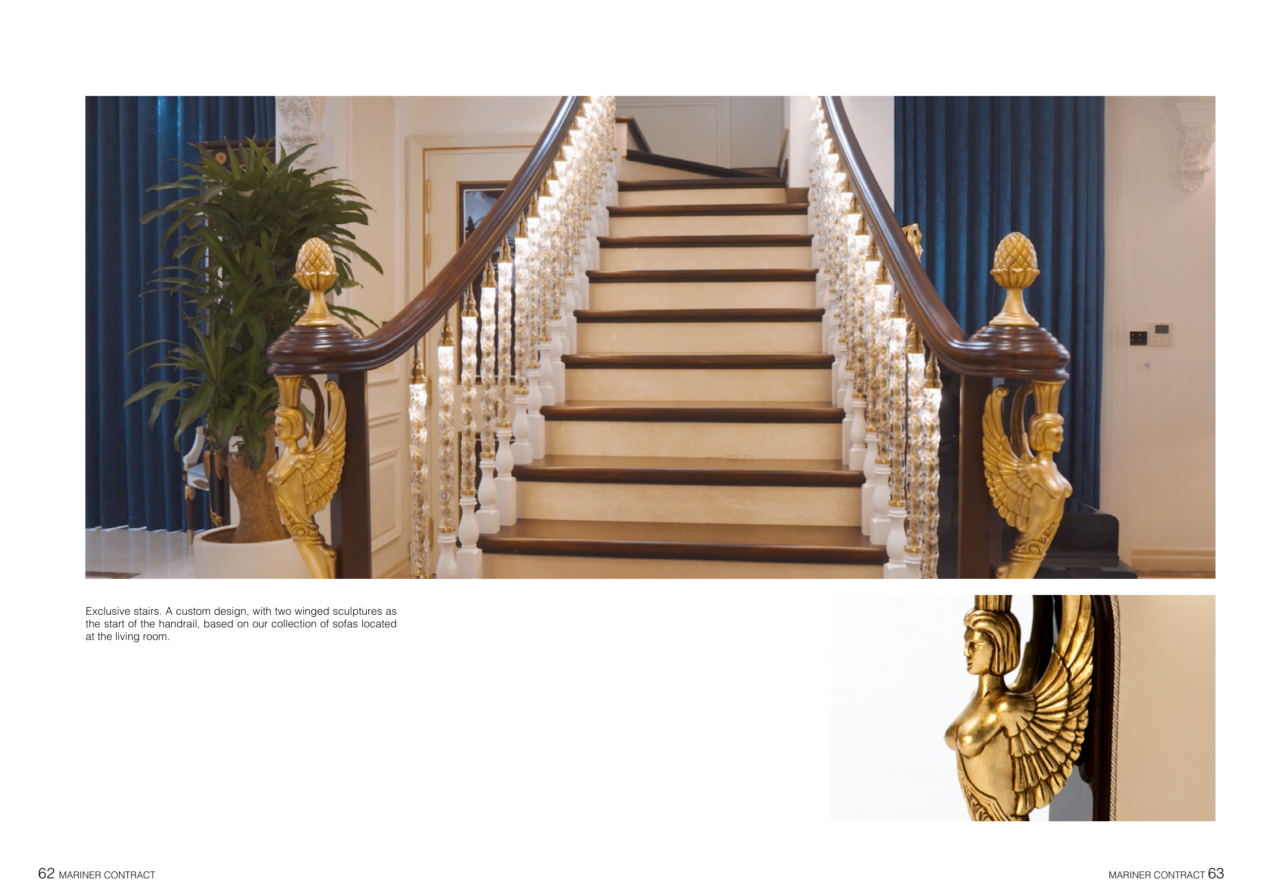 Exclusive stairs. A custom design, with two winged sculptures as