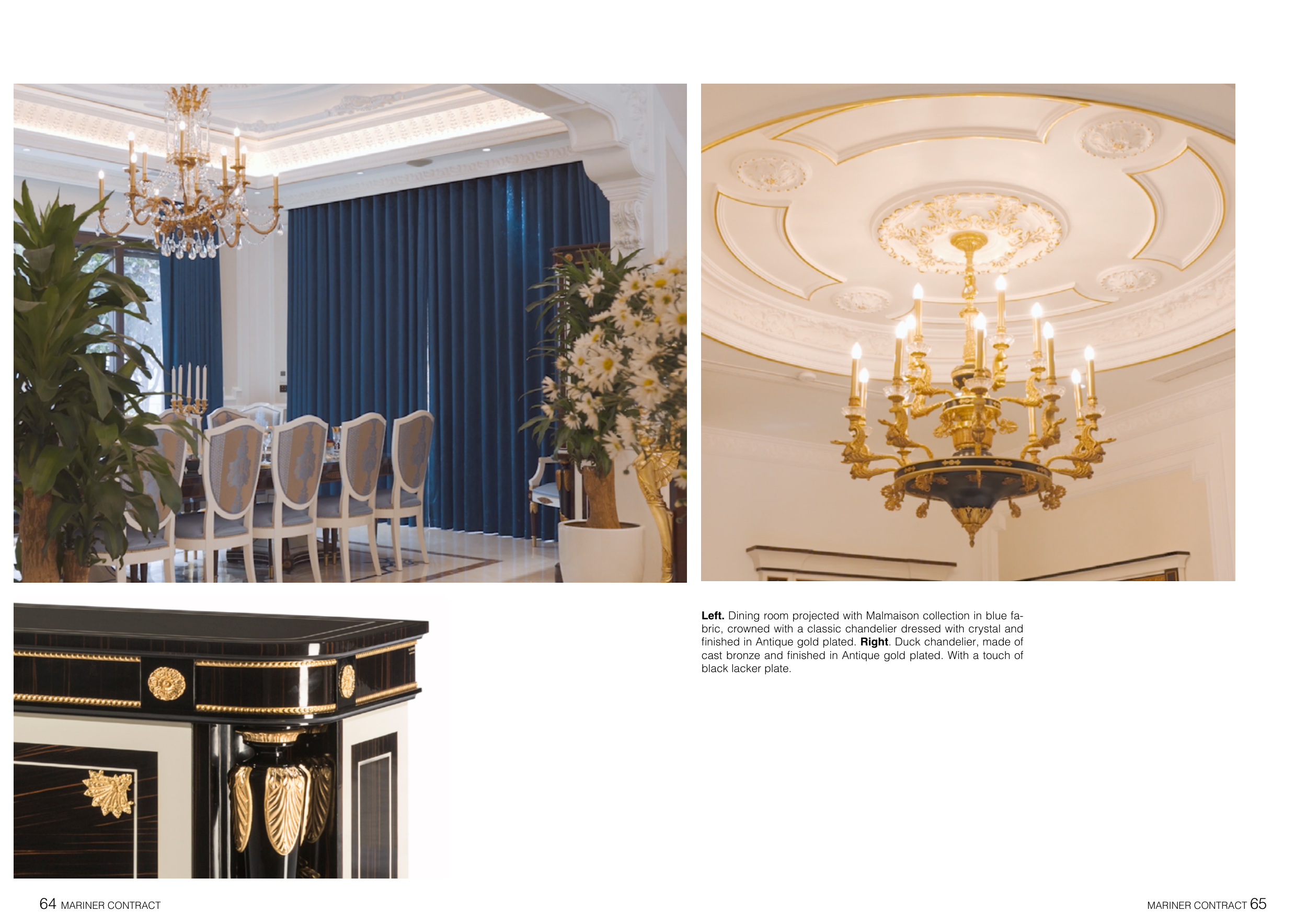 Left. Dining room projected with Malmaison collection in blue fa-