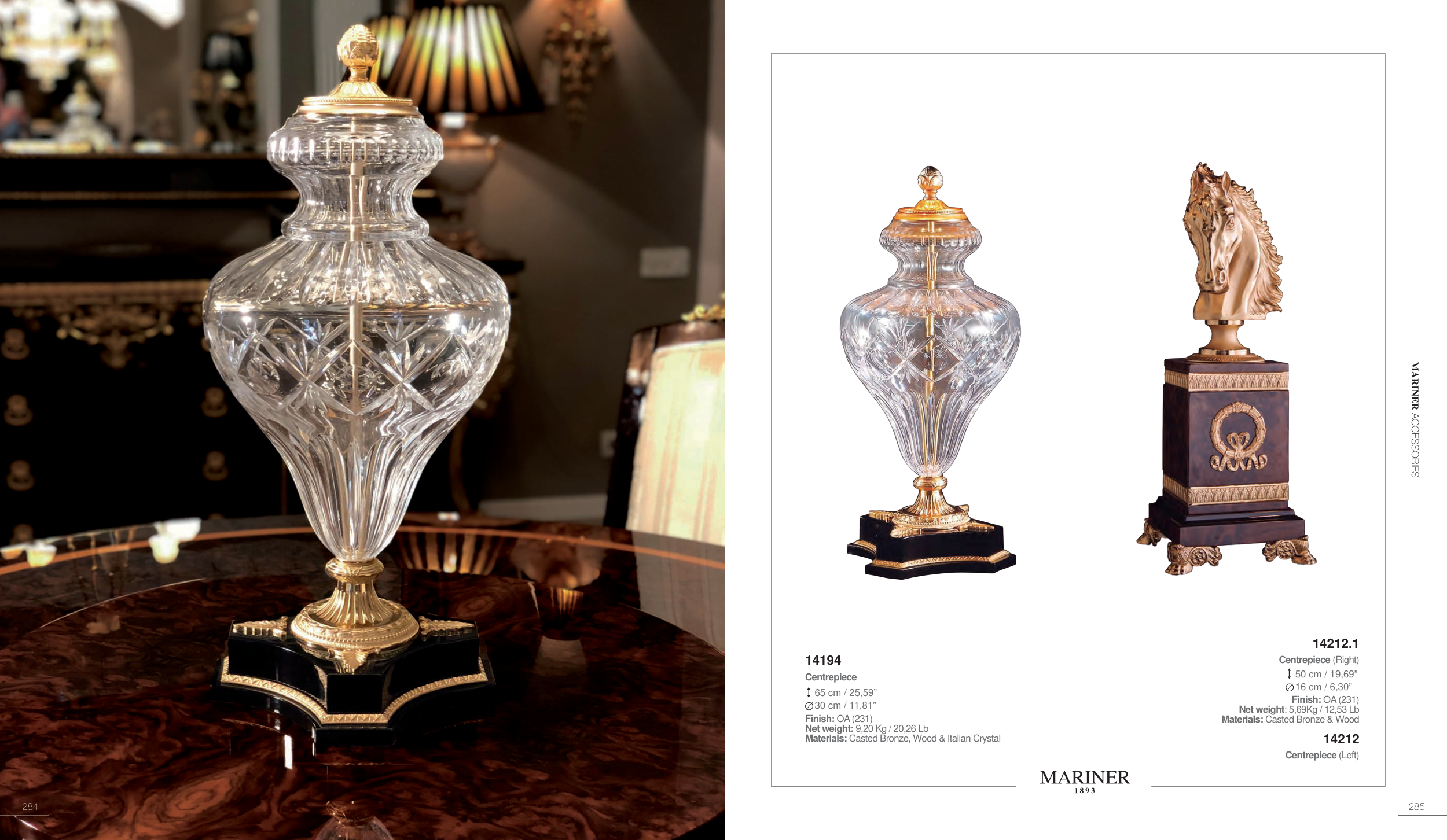 Materials: Casted Bronze, Wood & Italian Crystal
