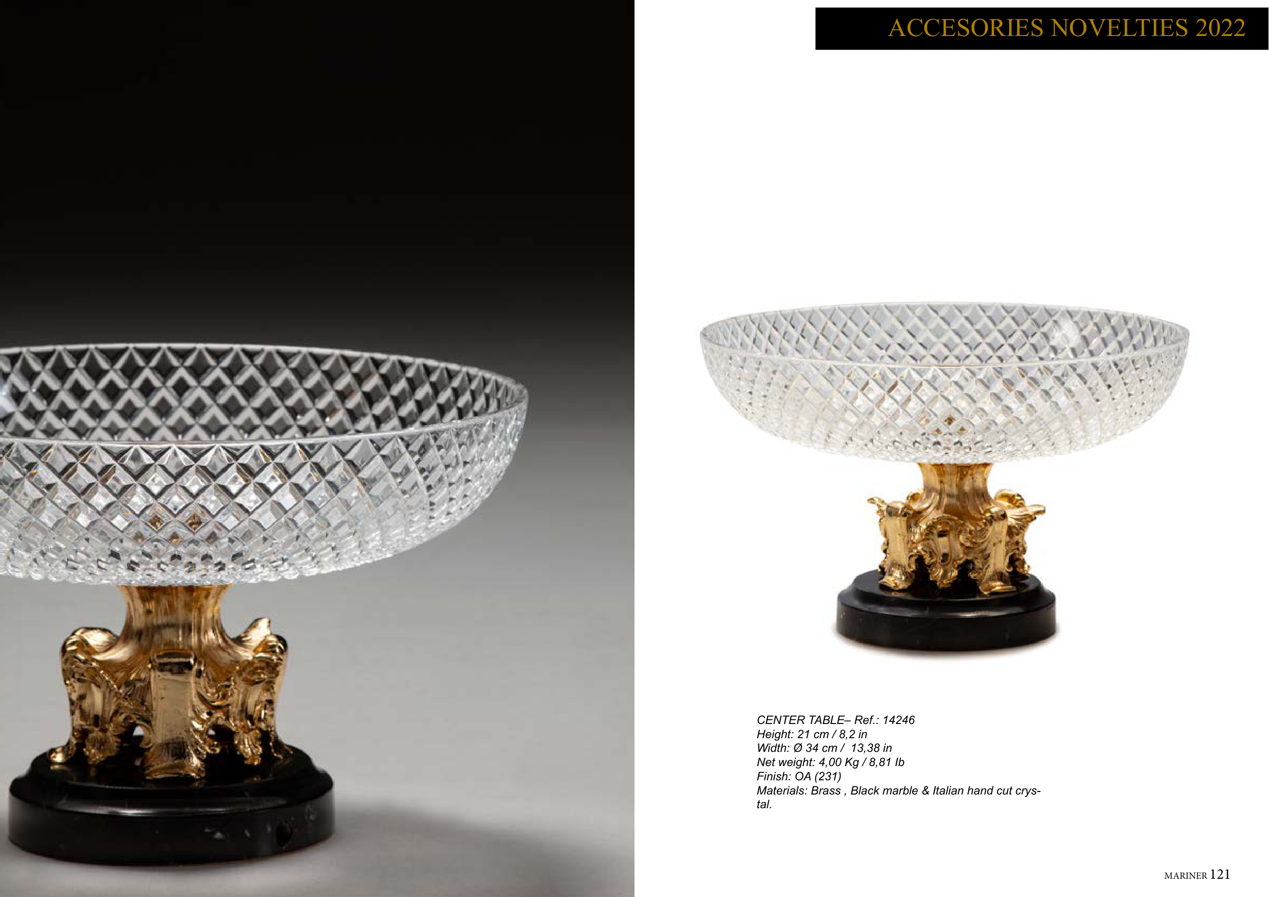 Materials: Brass , Black marble & Italian hand cut crys-
