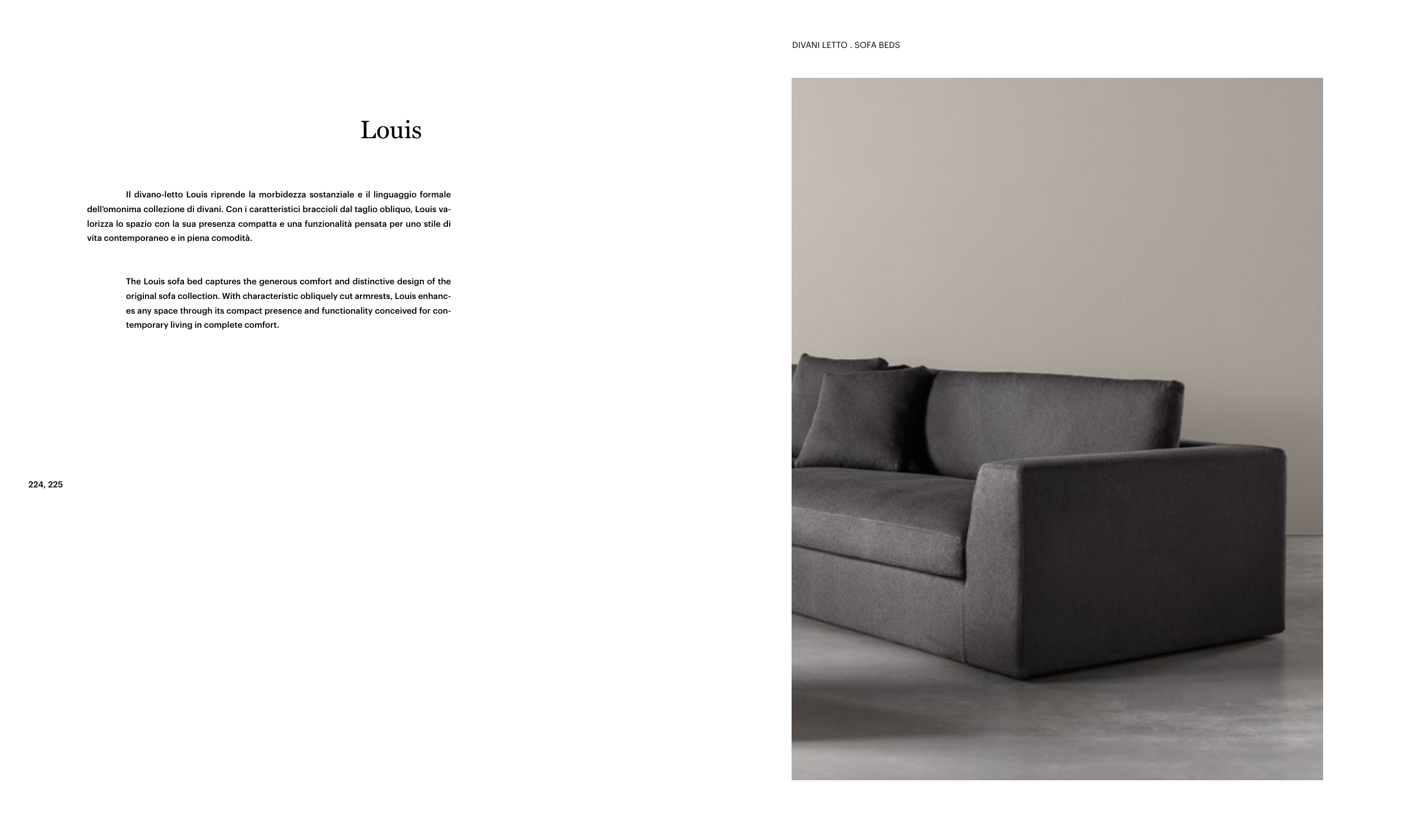 dell’omonima collezione di divani. Con i caratteristici braccioli dal taglio obliquo, Louis va-
