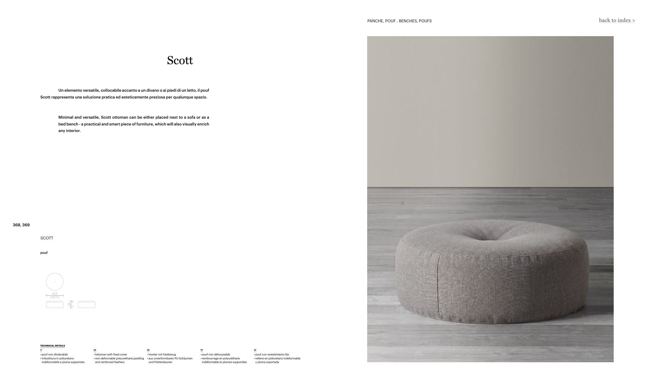 Minimal and versatile, Scott ottoman can be either placed next to a sofa or as a