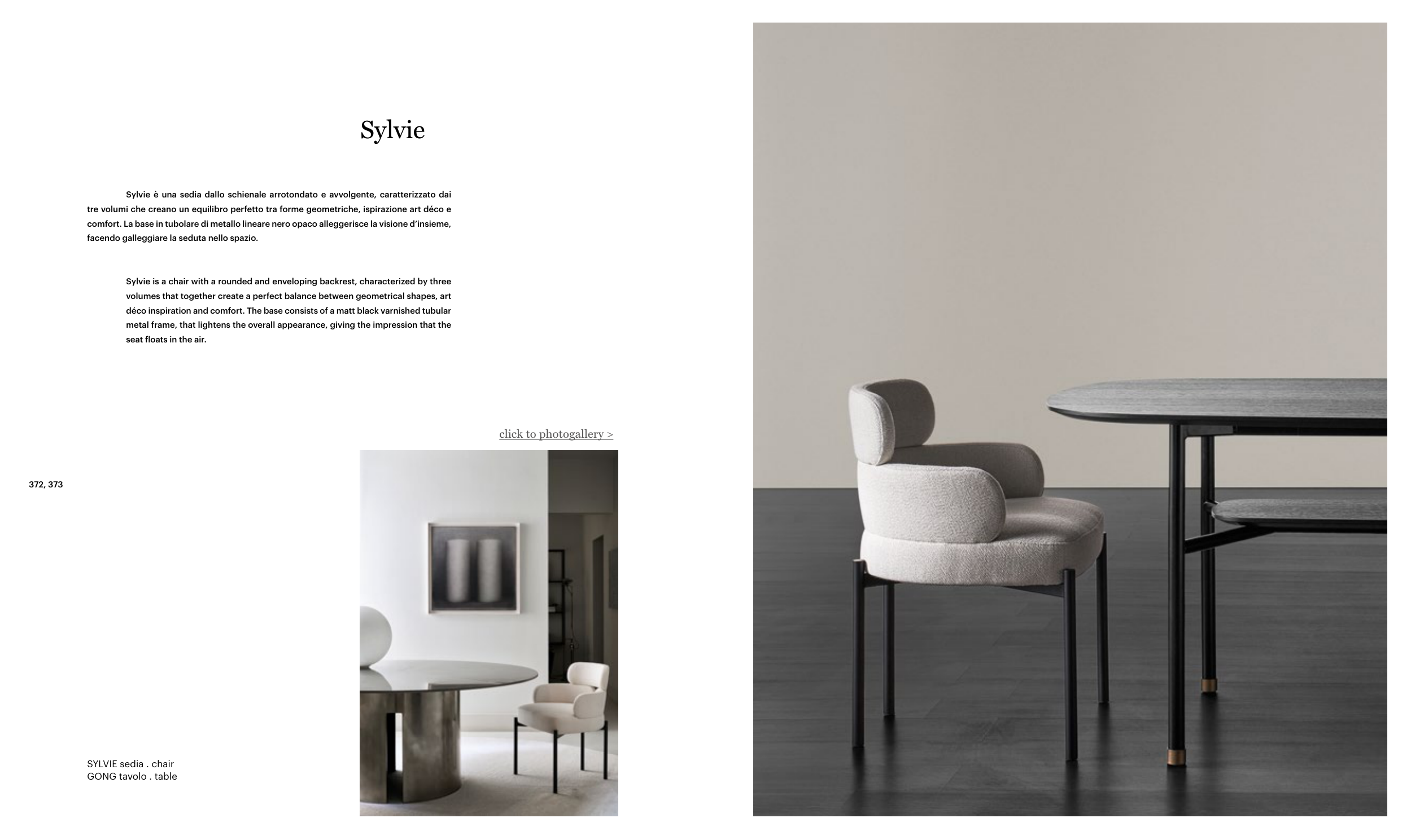 Sylvie è una sedia dallo schienale arrotondato e avvolgente, caratterizzato dai