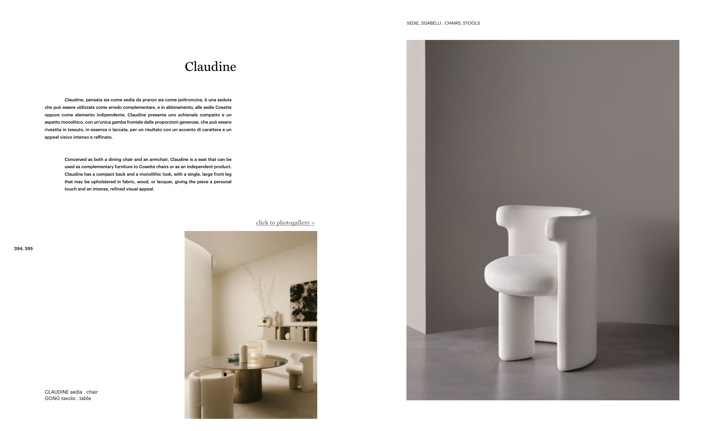Conceived as both a dining chair and an armchair, Claudine is a seat that can be