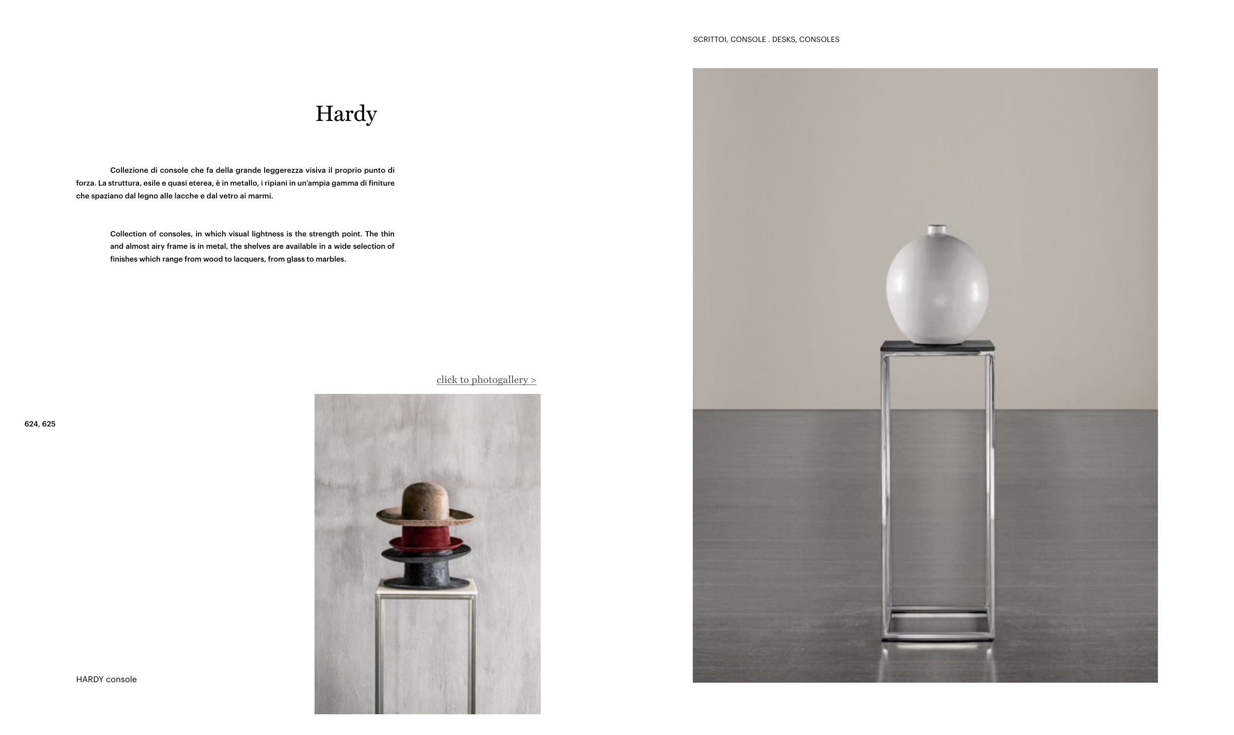 Collection of consoles, in which visual lightness is the strength point. The thin