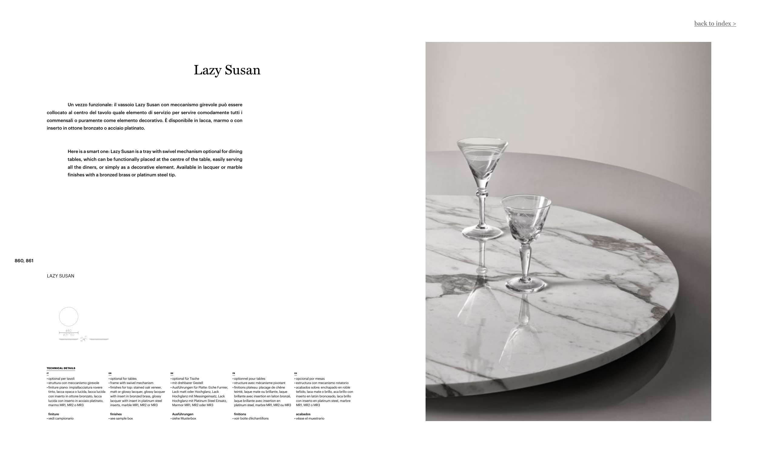commensali o puramente come elemento decorativo. È disponibile in lacca, marmo o con