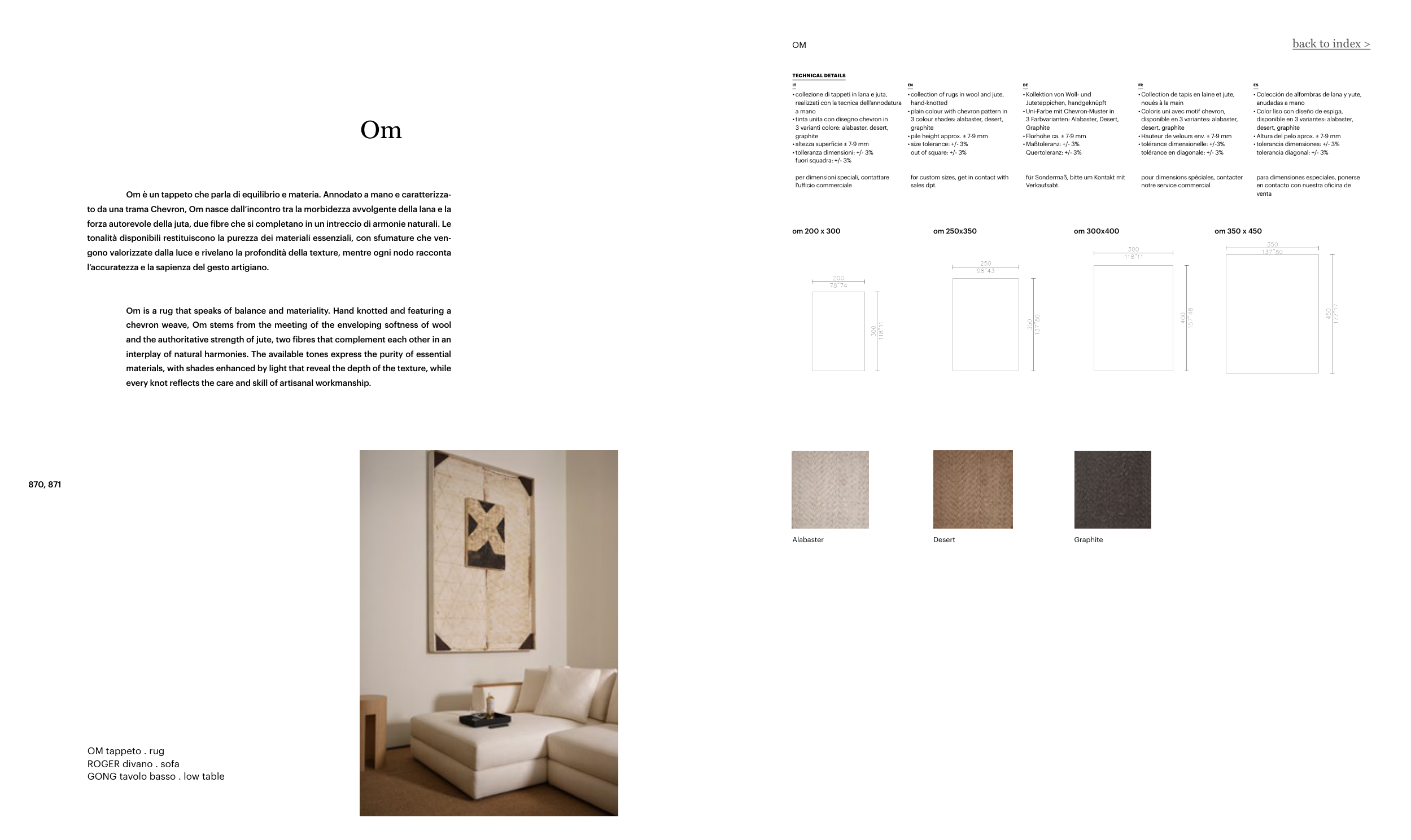 Om è un tappeto che parla di equilibrio e materia. Annodato a mano e caratterizza-