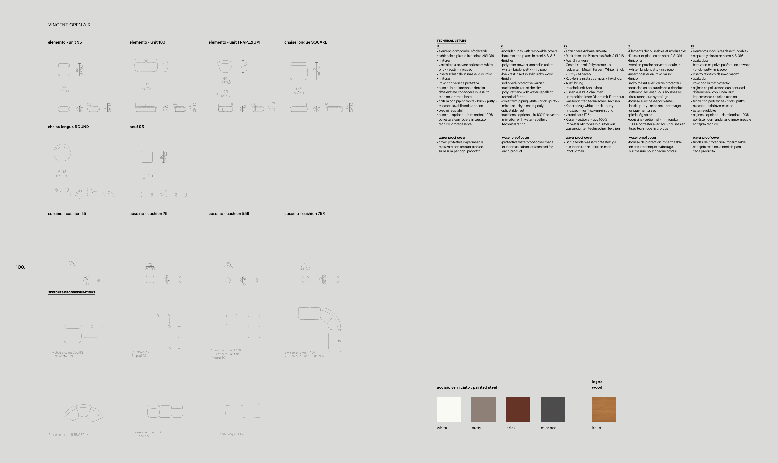 • elementi componibili sfoderabili