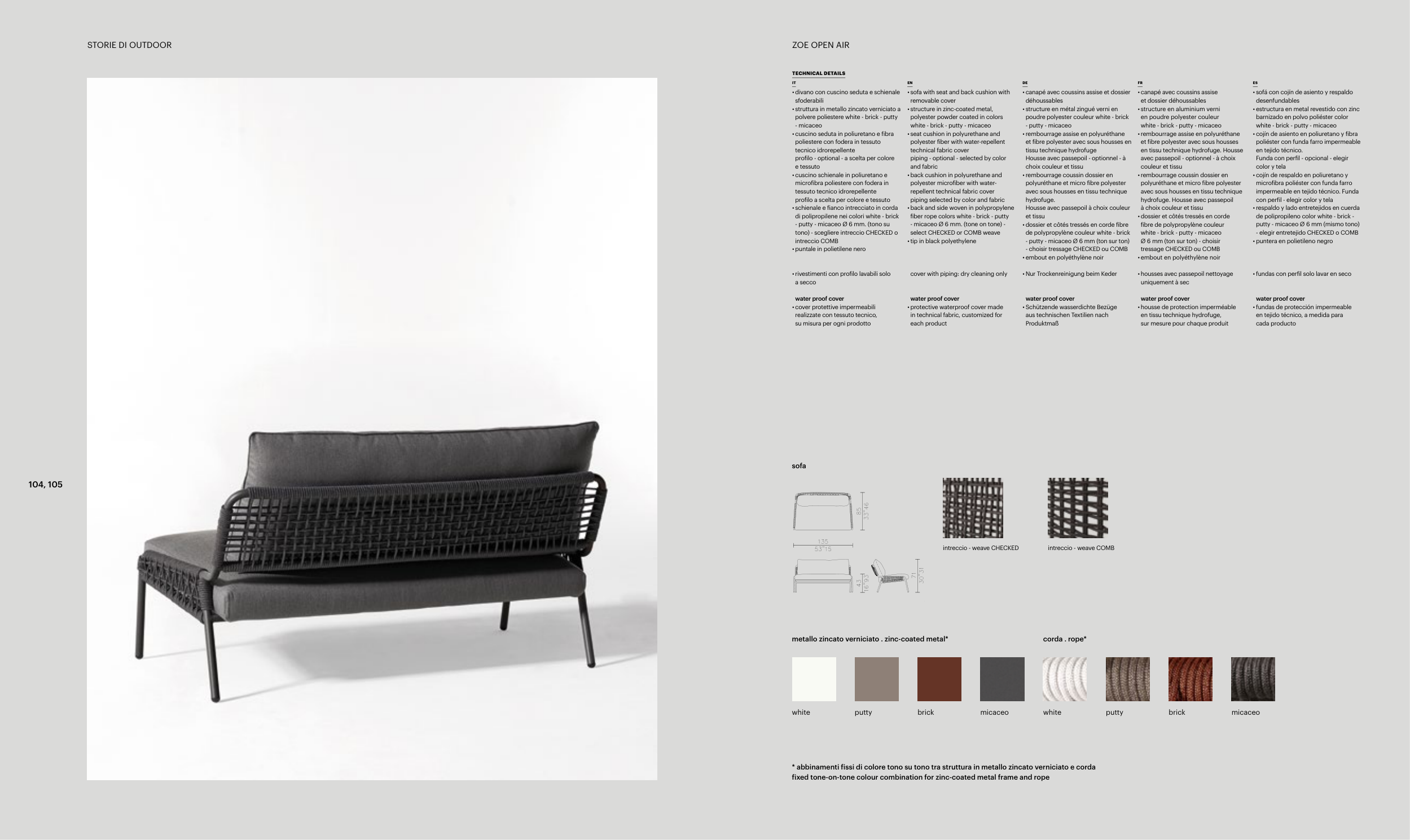 * abbinamenti fissi di colore tono su tono tra struttura in metallo zincato verniciato e corda