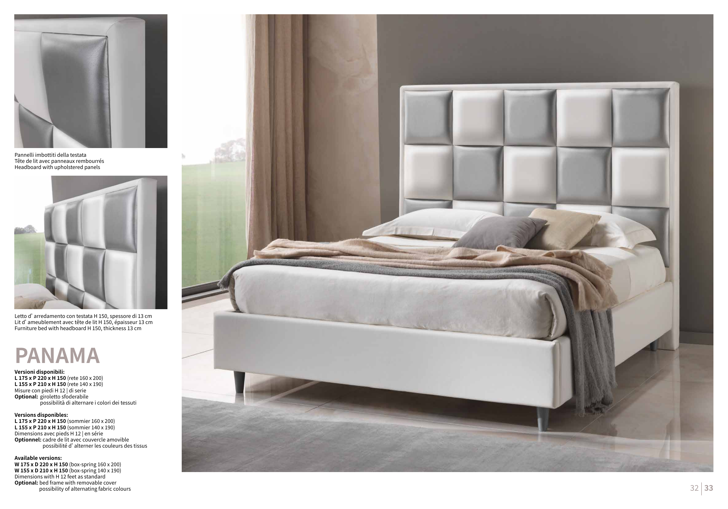 Letto d’arredamento con testata H 150, spessore di 13 cm