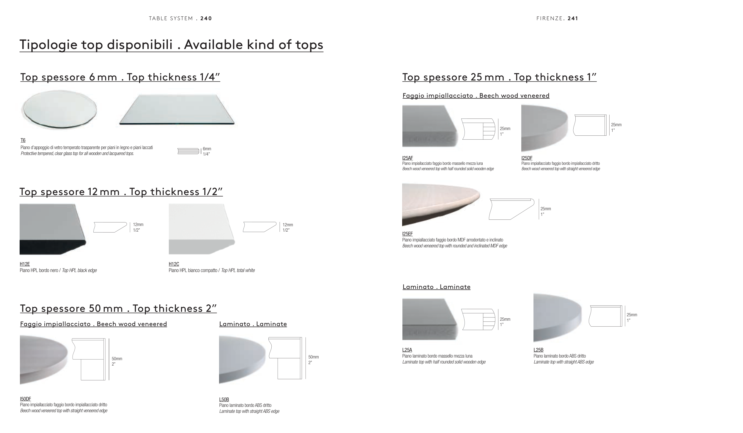 Top spessore 25 mm . Top thickness 1”