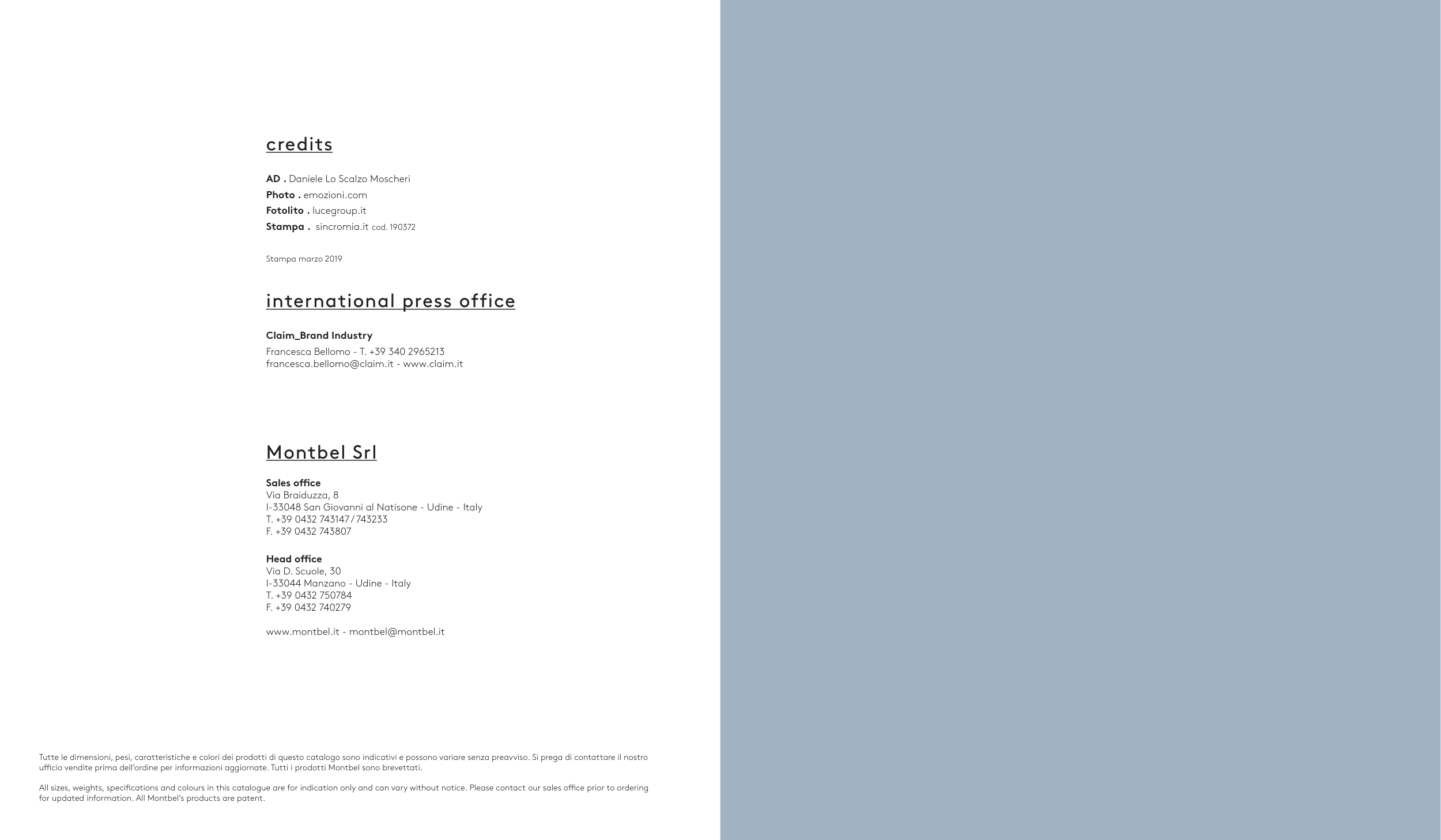 ufficio vendite prima dell’ordine per informazioni aggiornate. Tutti i prodotti Montbel sono brevettati.