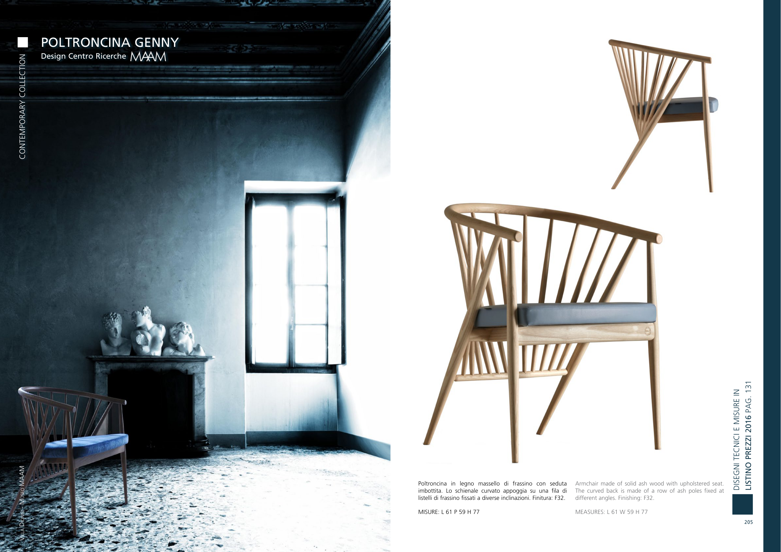 listelli di frassino fissati a diverse inclinazioni. Finitura: F32.