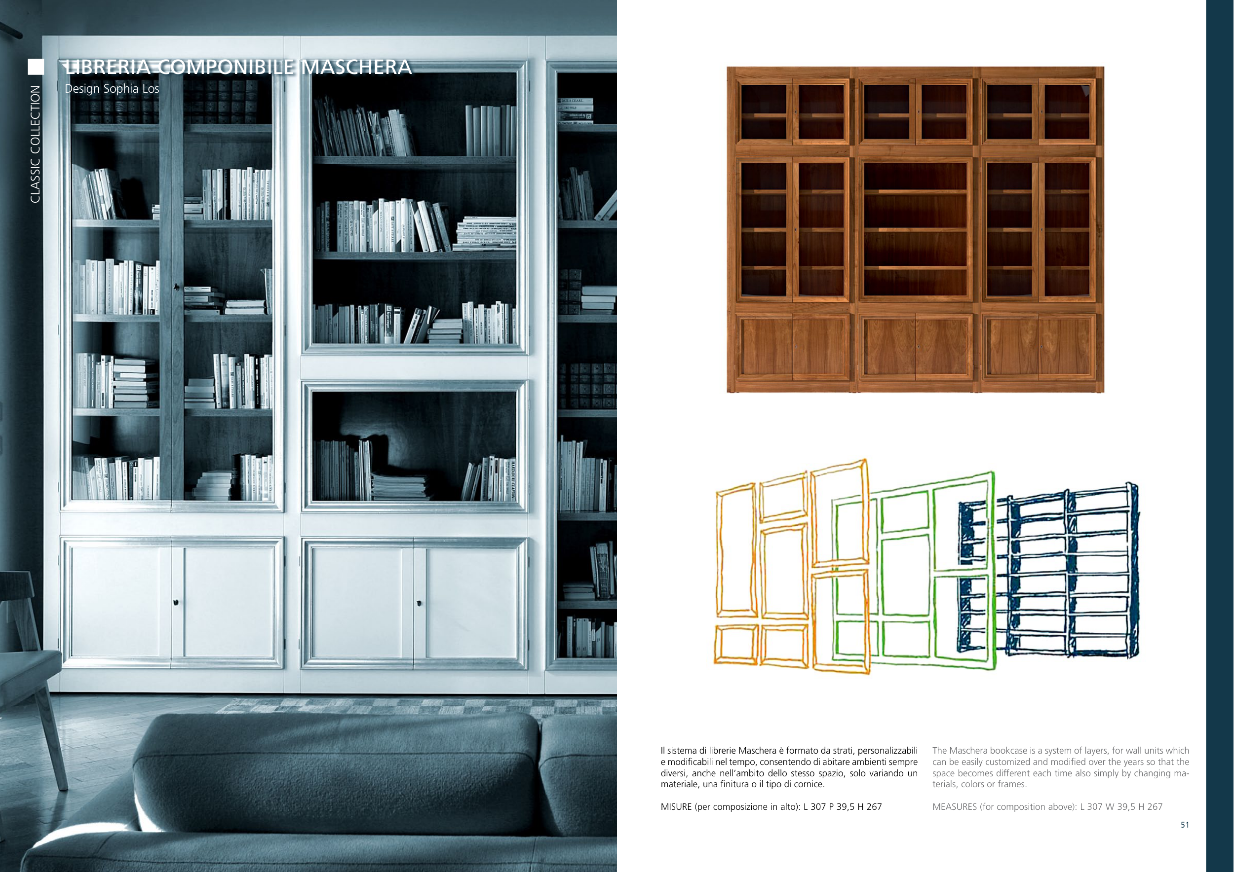 The Maschera bookcase is a system of layers, for wall units which