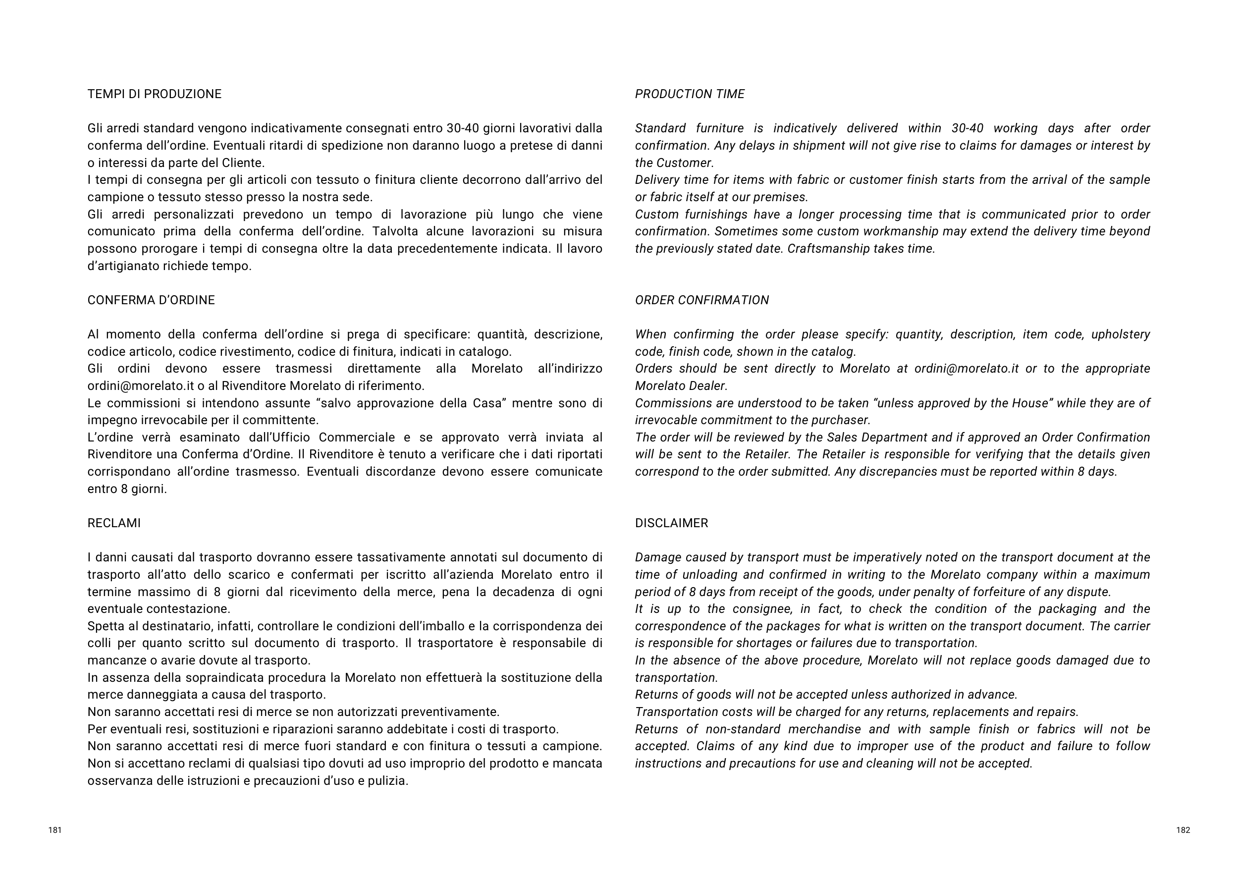 Morelato Italy Lead time 80 days