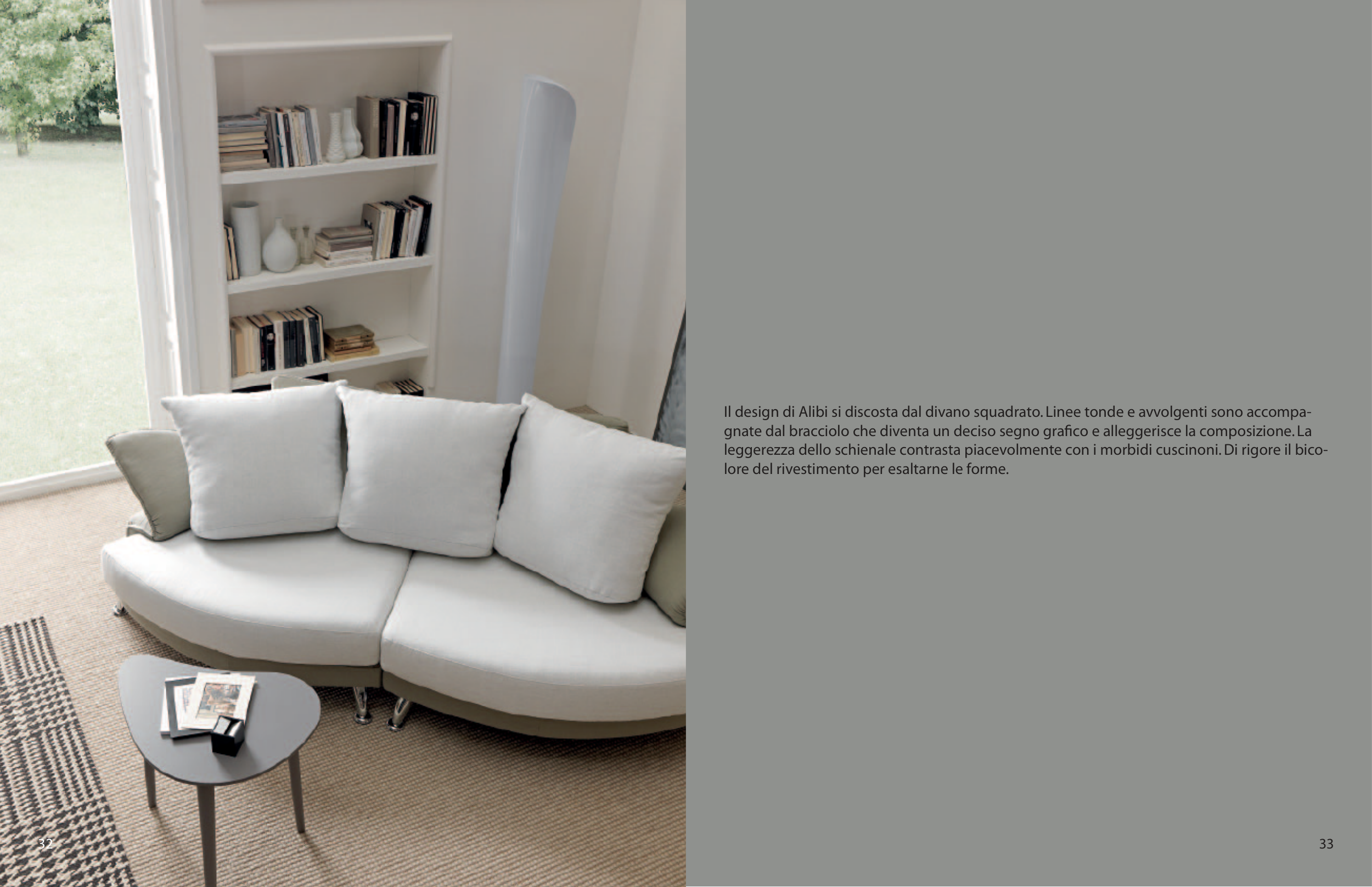 Il design di Alibi si discosta dal divano squadrato. Linee tonde e avvolgenti sono accompa-