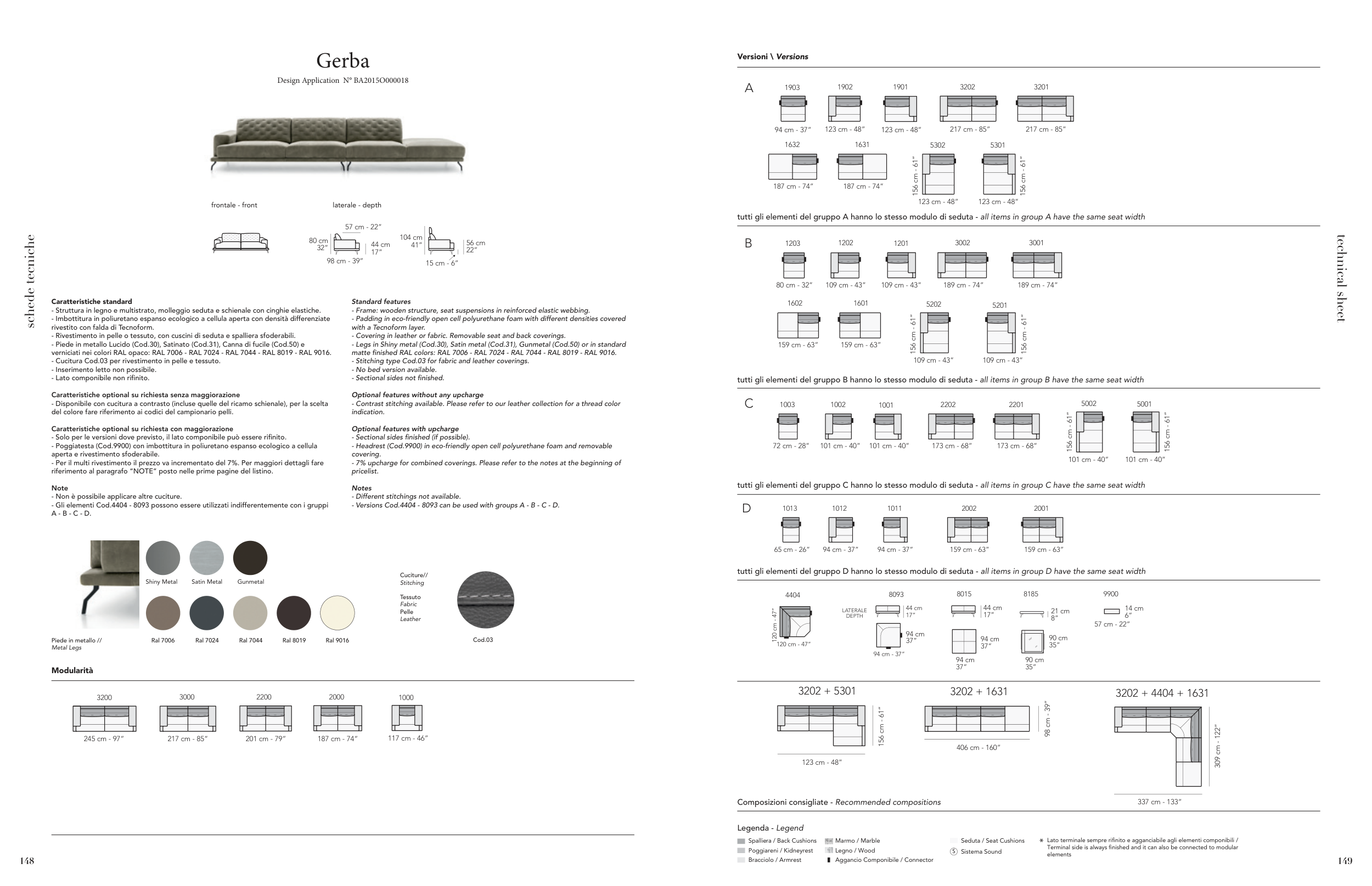 tutti gli elementi del gruppo C hanno lo stesso modulo di seduta - all items in group C have the same seat width