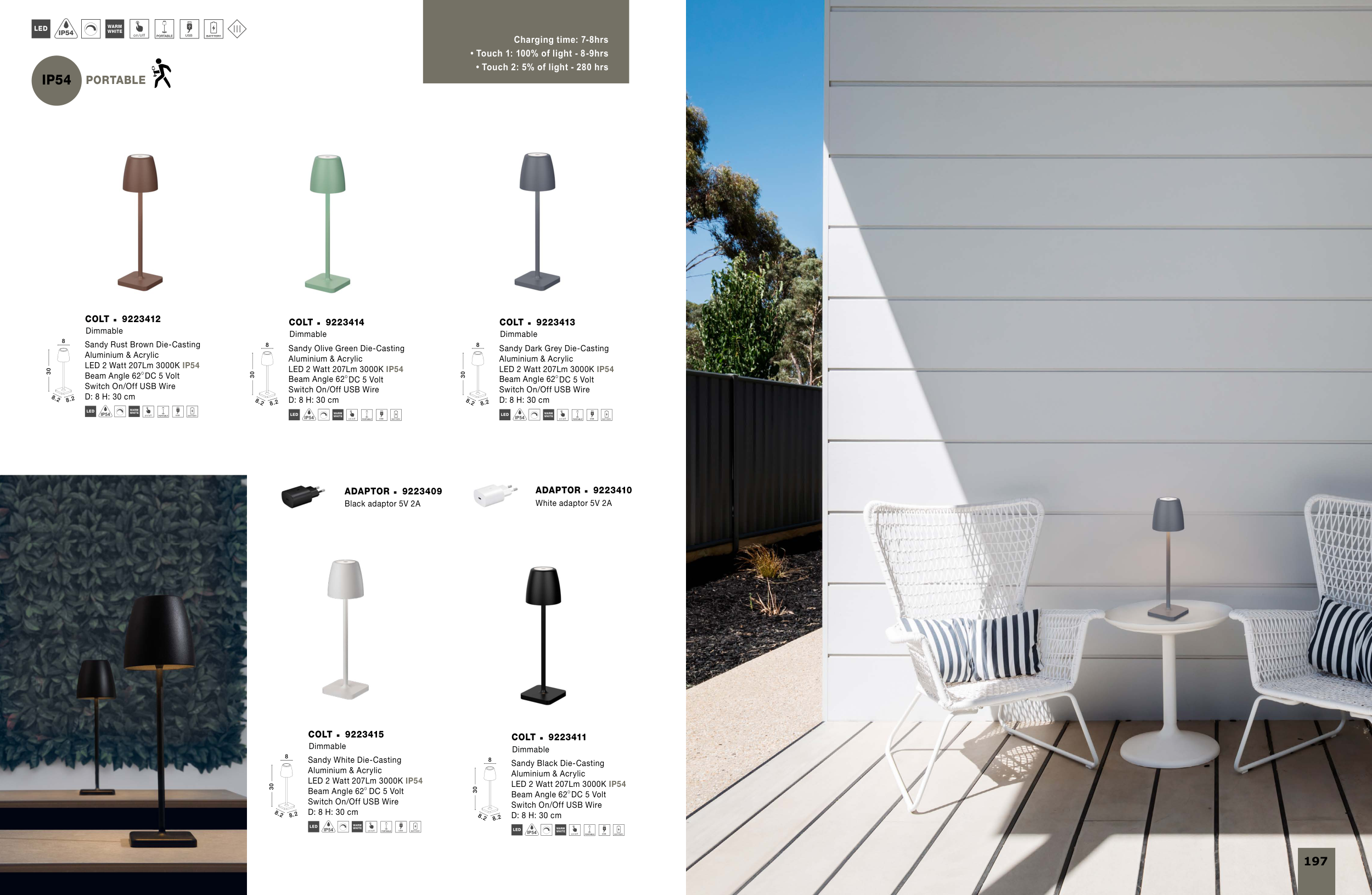 • Touch 1: 100% of light - 8-9hrs
