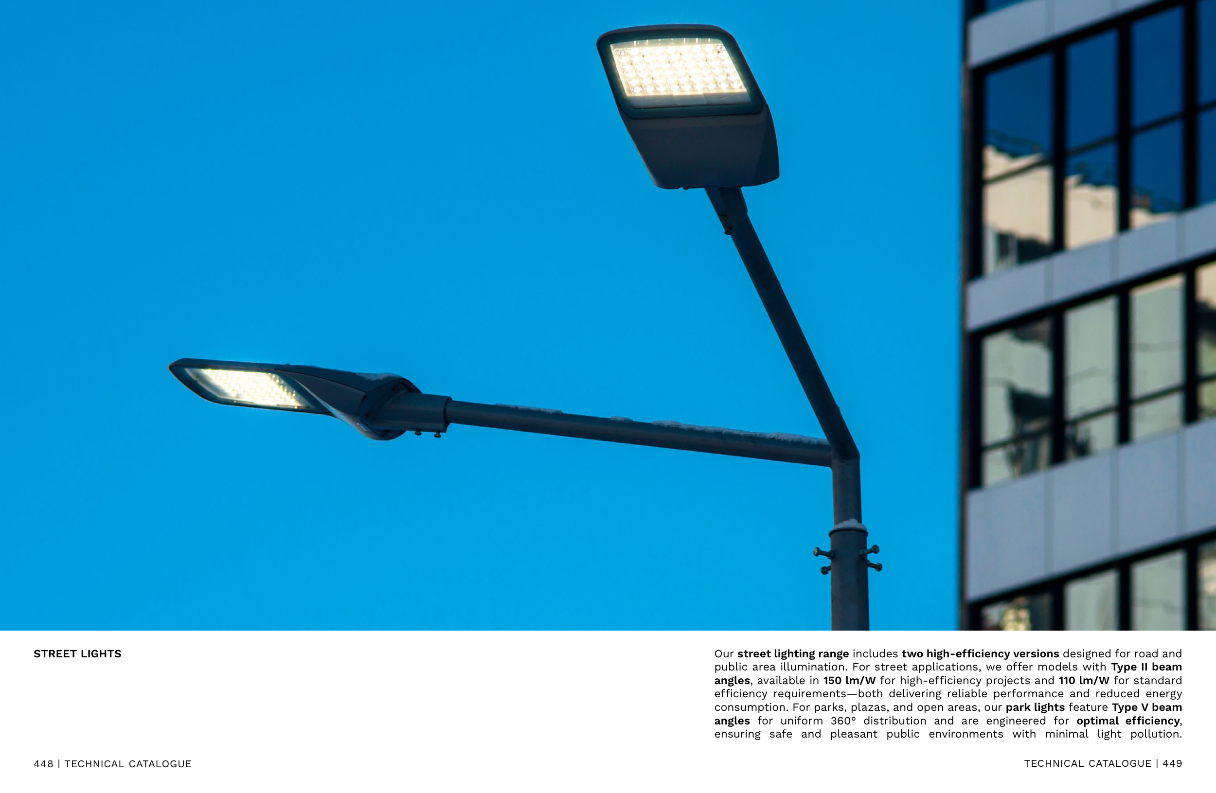 Our street lighting range includes two high-efficiency versions designed for road and
