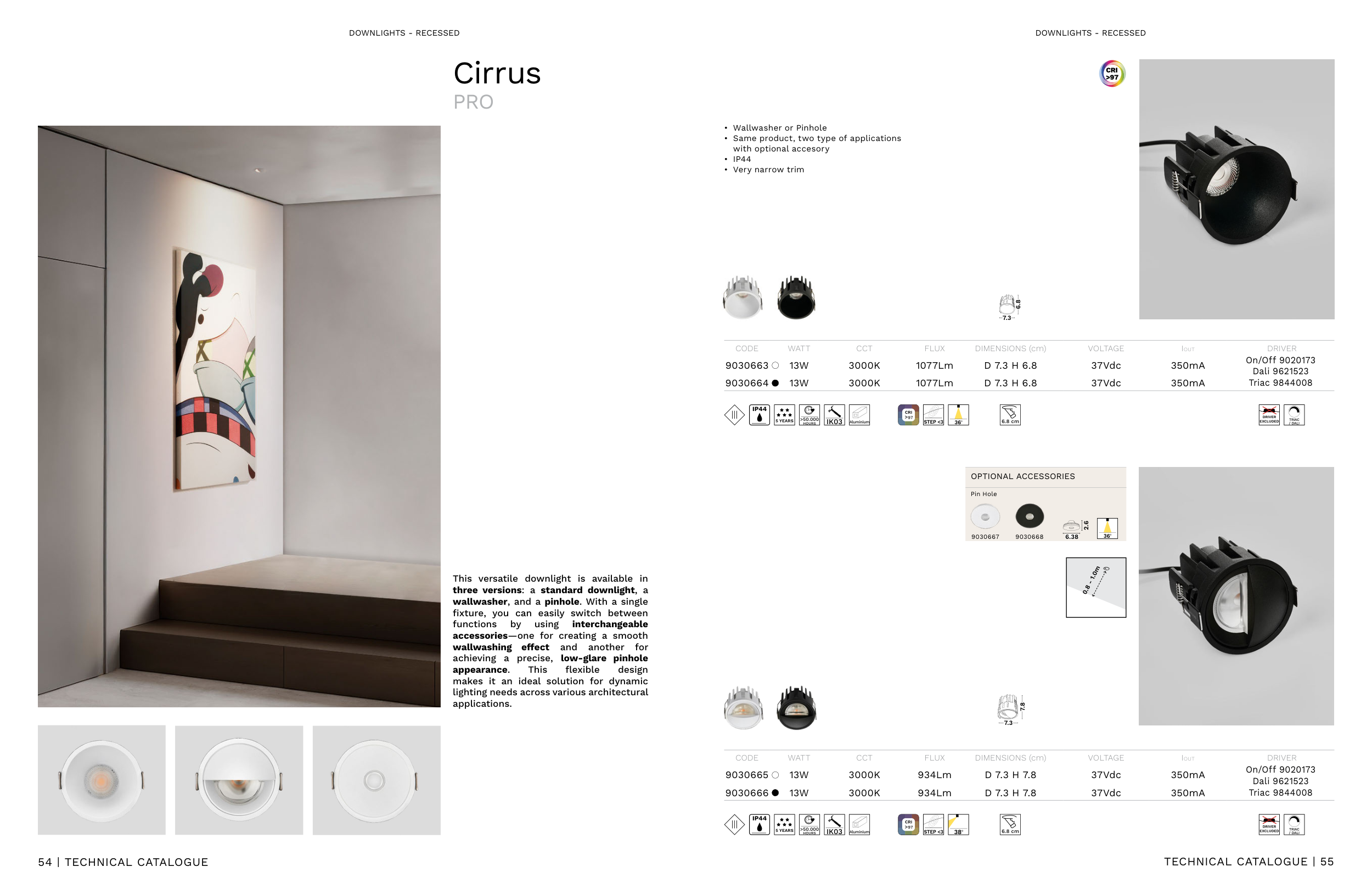 • Wallwasher or Pinhole