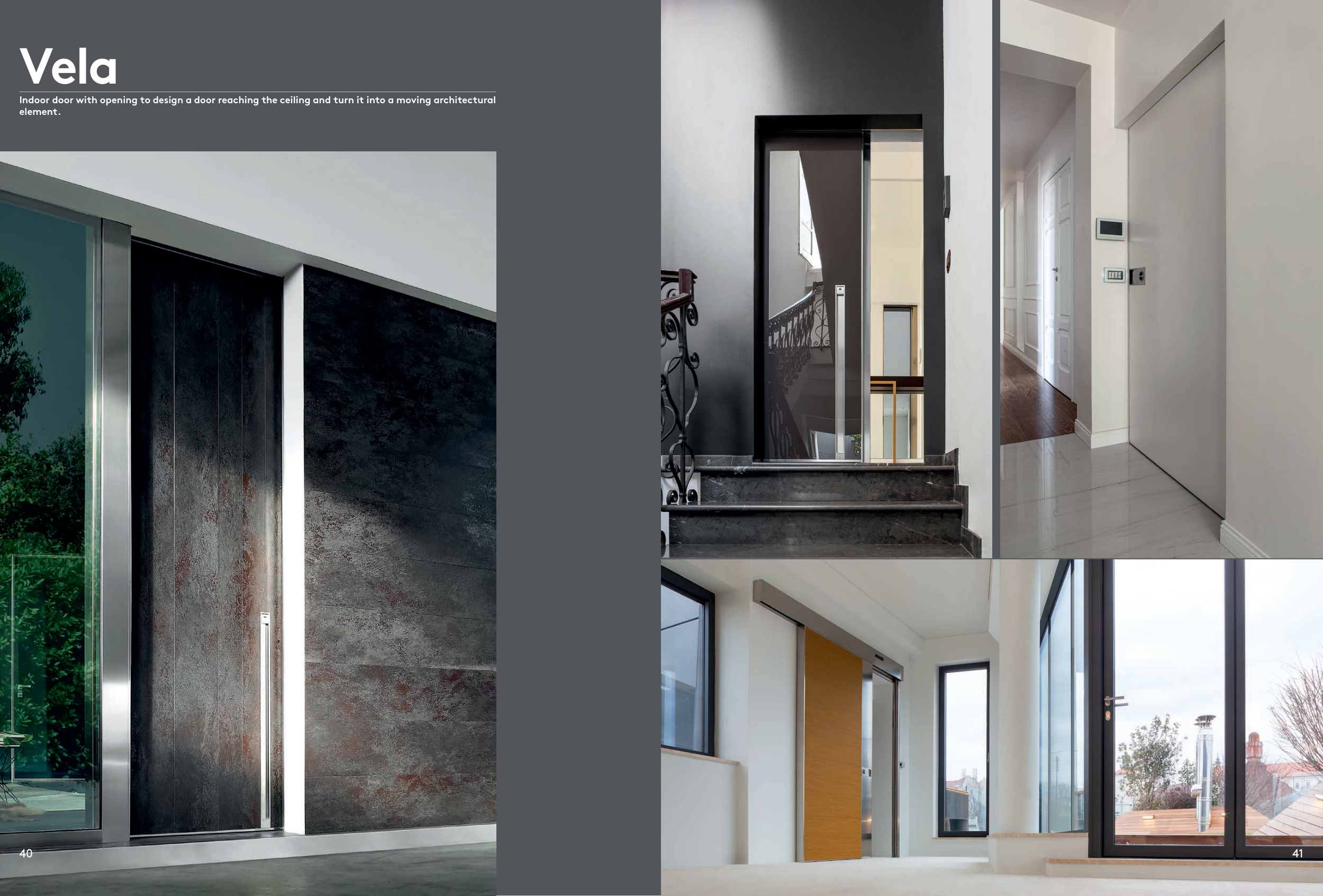 Indoor door with opening to design a door reaching the ceiling and turn it into a moving architectural