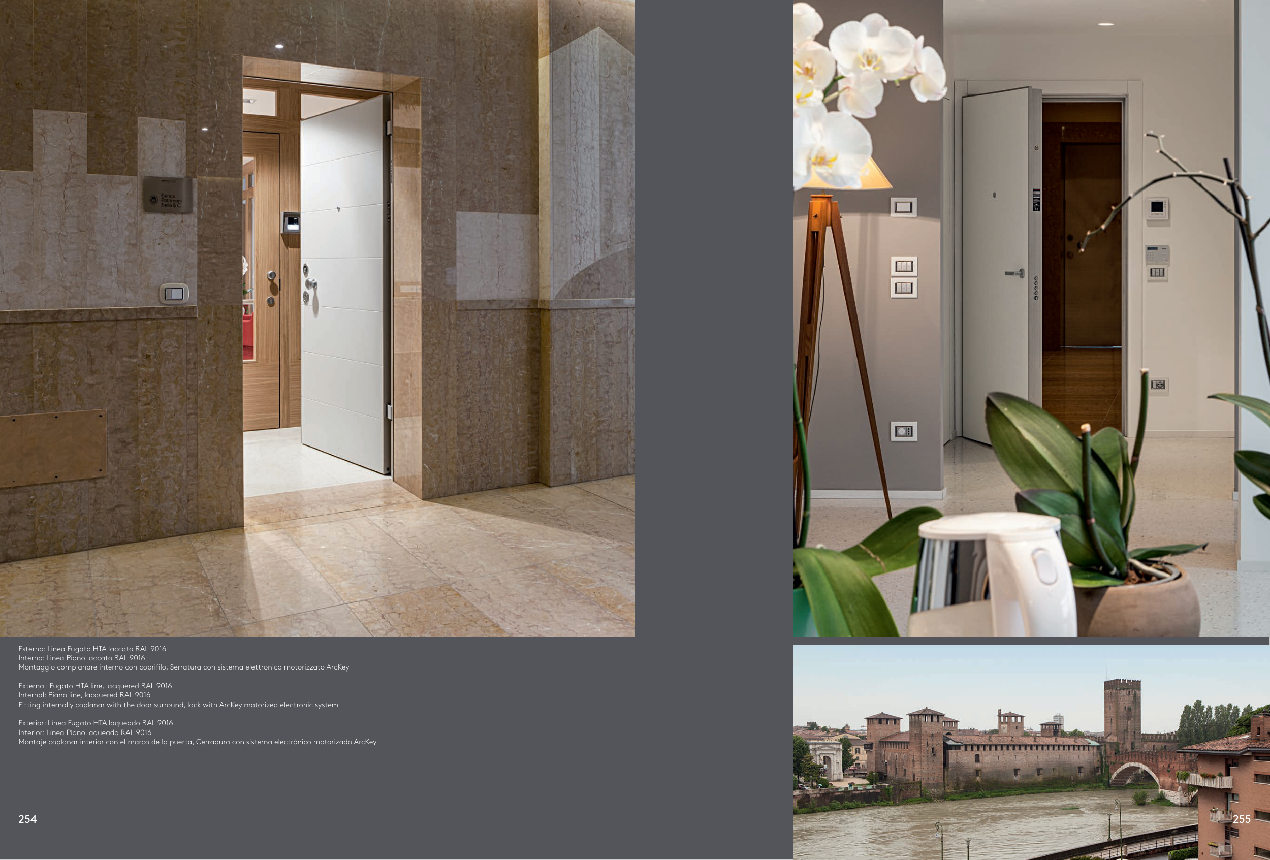 Fitting internally coplanar with the door surround, lock with ArcKey motorized electronic system