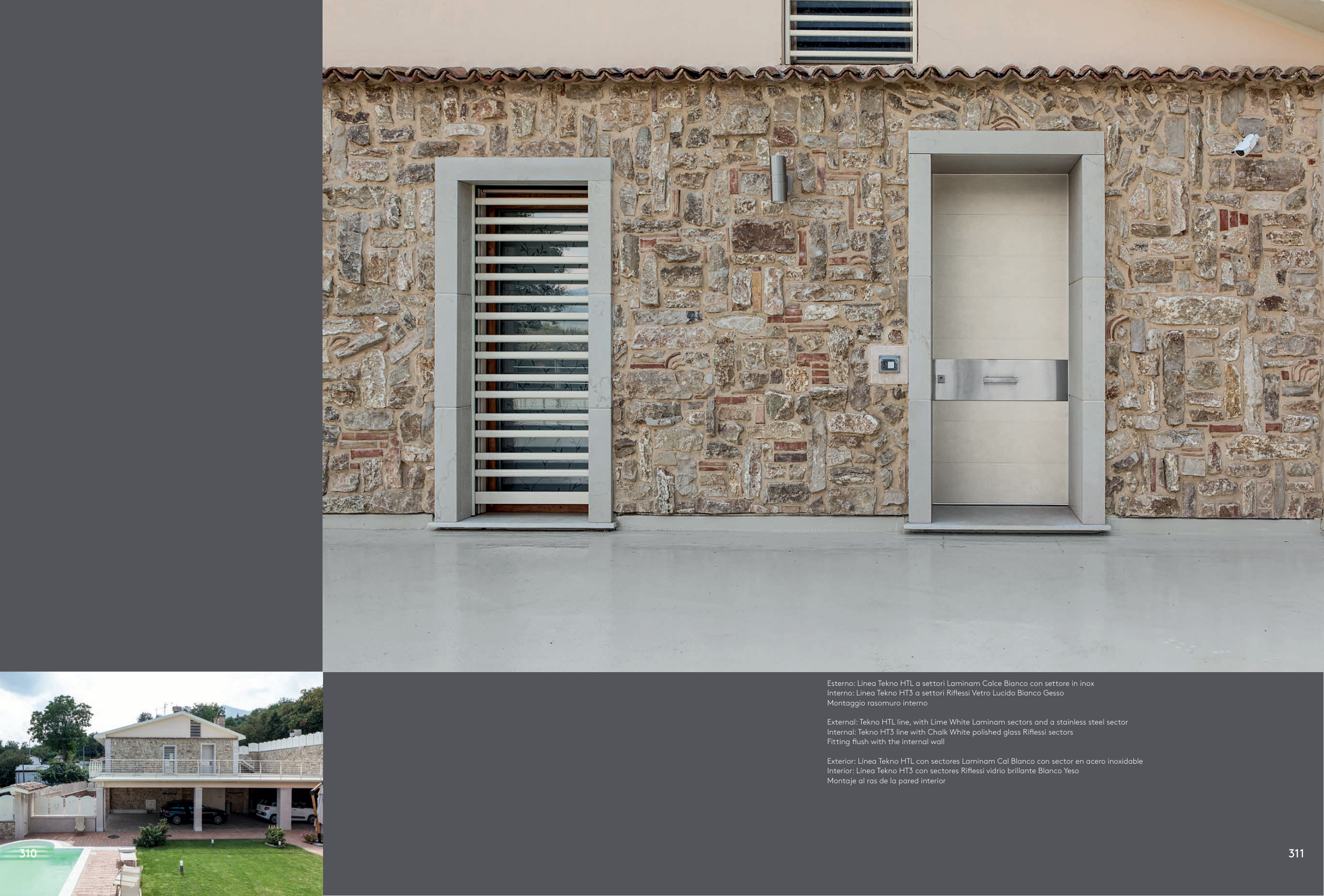 Exterior: Línea Tekno HTL con sectores Laminam Cal Blanco con sector en acero inoxidable