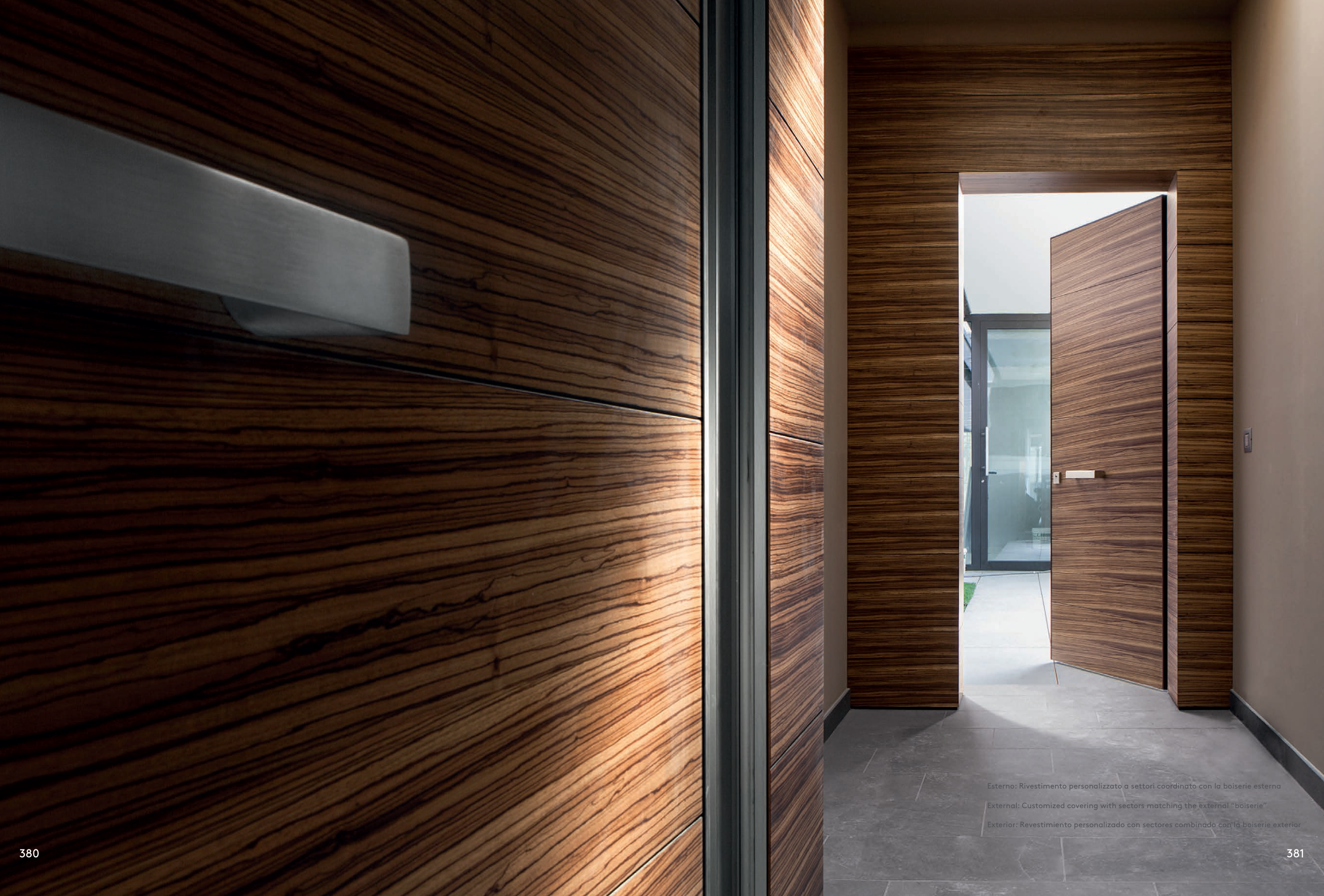 380 381 Esterno: Rivestimento personalizzato a settori coordinato con la boiserie esterna External: Customized covering with sectors matching the external “boiserie” Exterior: Revestimiento personalizado con sectores combinado con la boiserie exterior