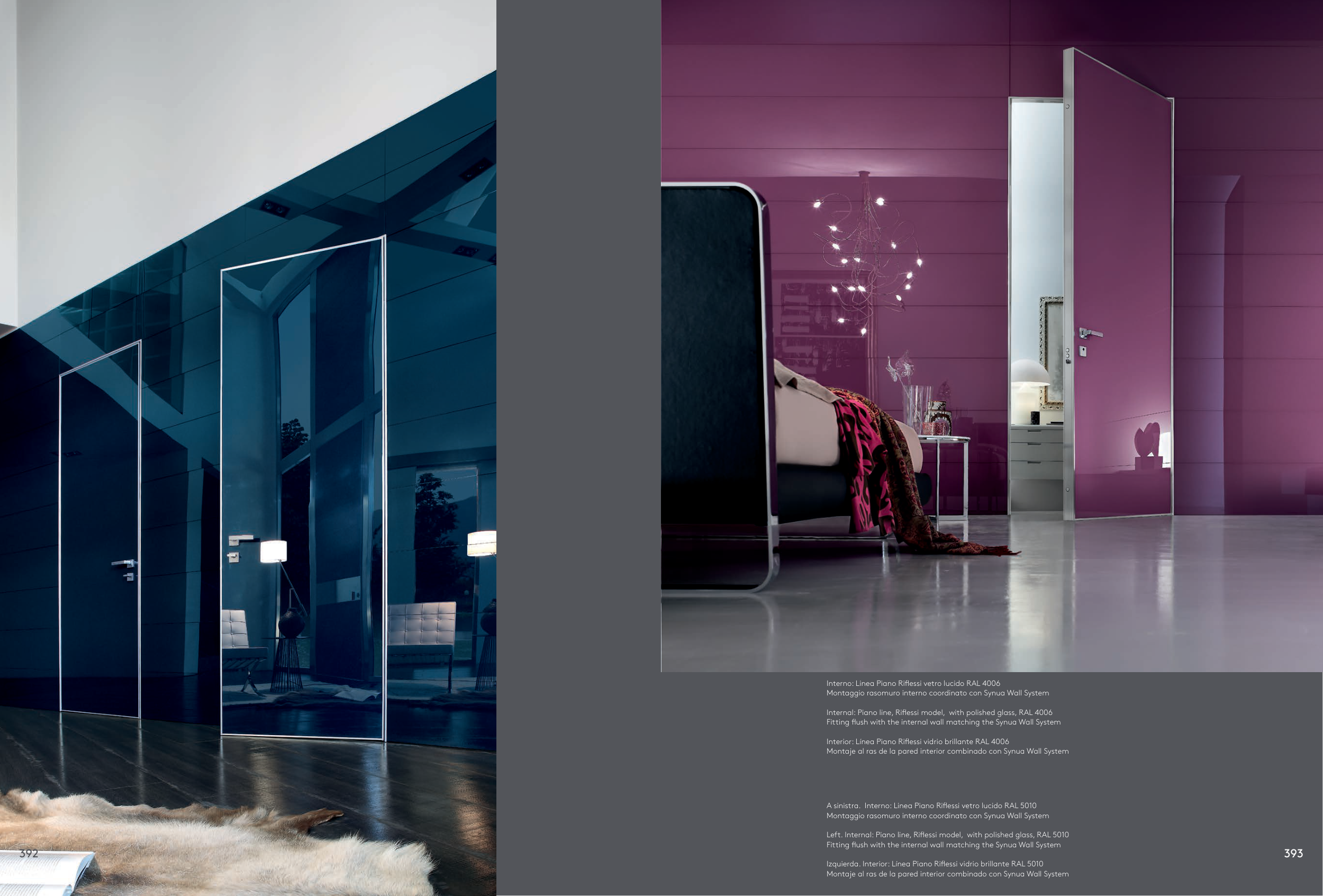 Left. Internal: Piano line, Riflessi model, with polished glass, RAL 5010