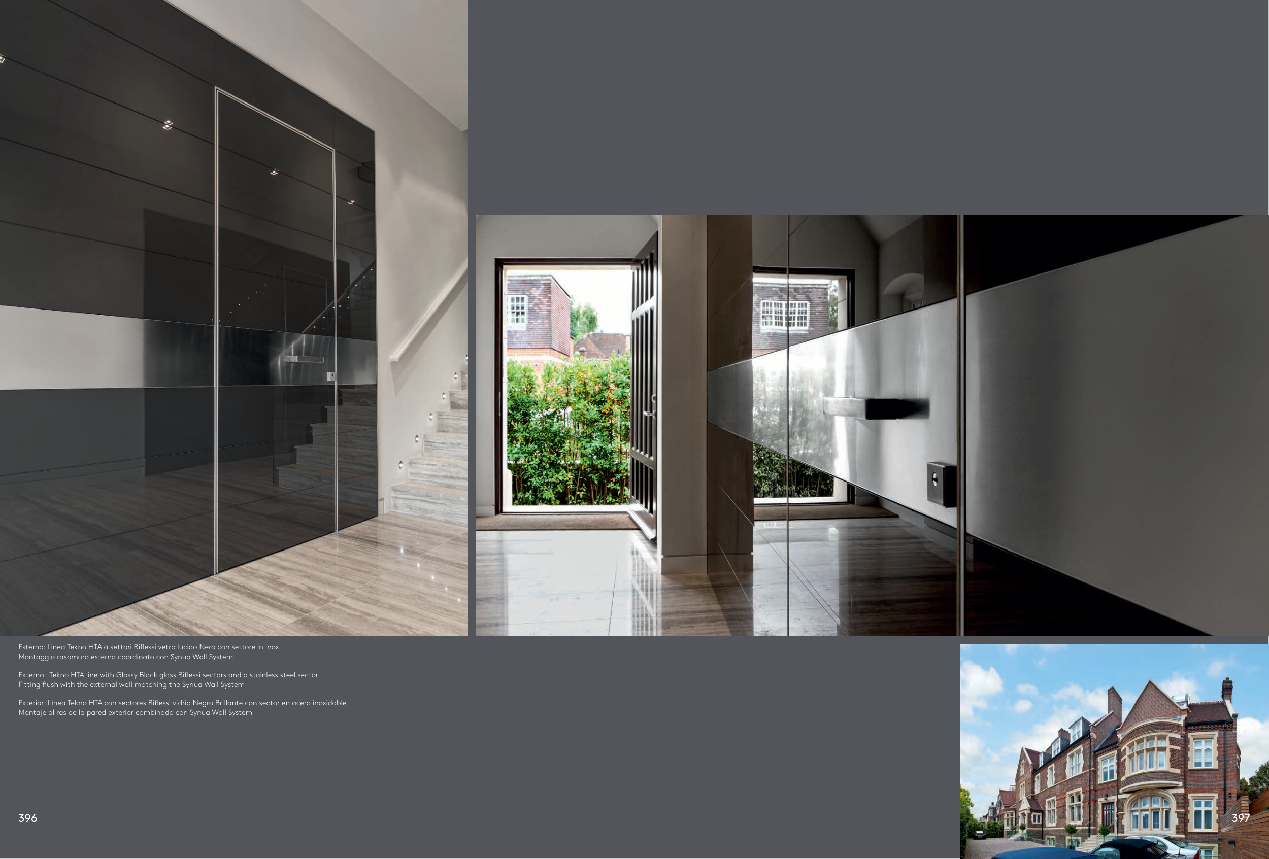 Exterior: Línea Tekno HTA con sectores Riflessi vidrio Negro Brillante con sector en acero inoxidable