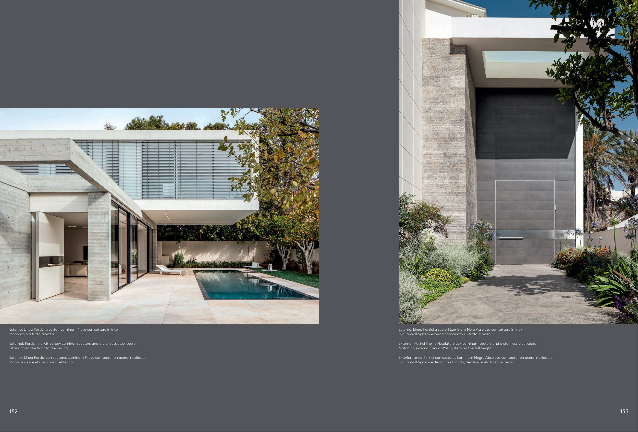 Exterior: Línea Portici con sectores Laminam Nieve con sector en acero inoxidable