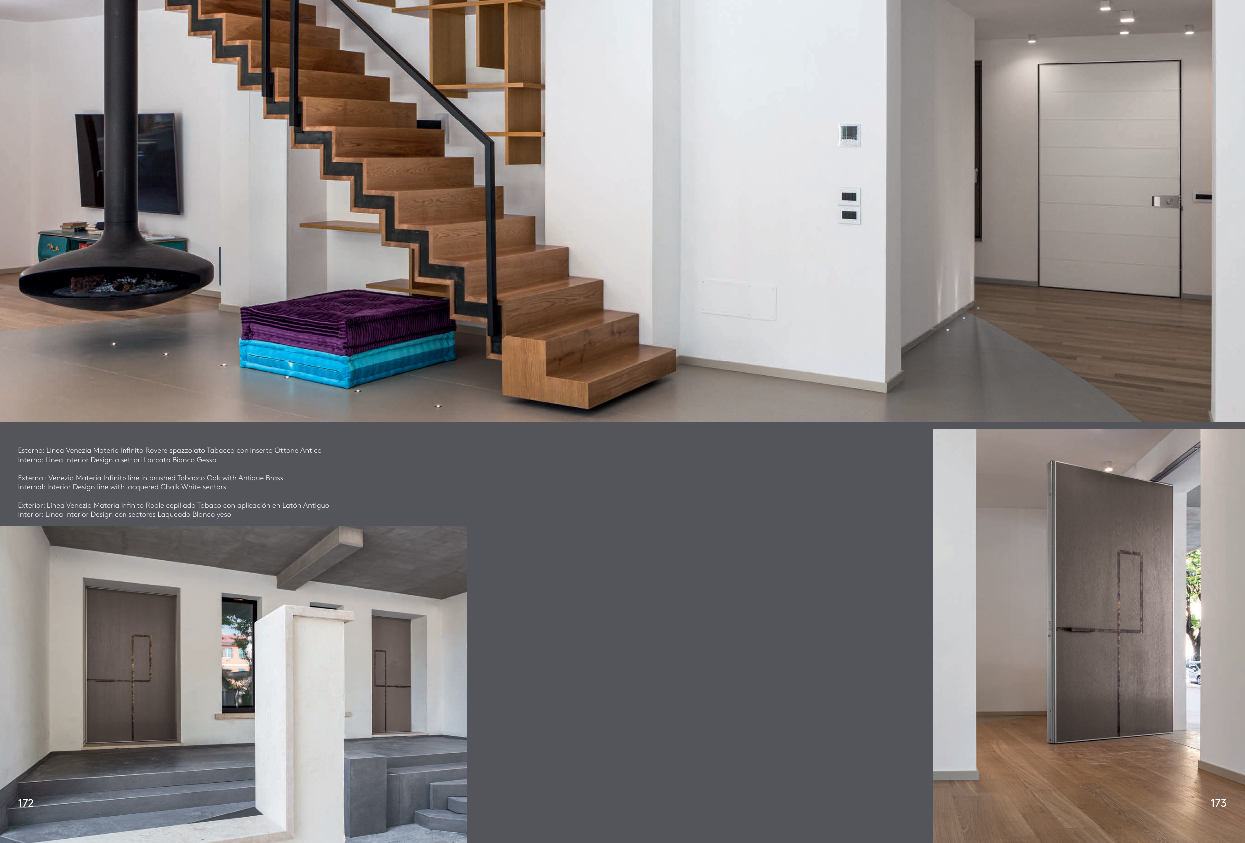 Exterior: Línea Venezia Materia Infinito Roble cepillado Tabaco con aplicación en Latón Antiguo