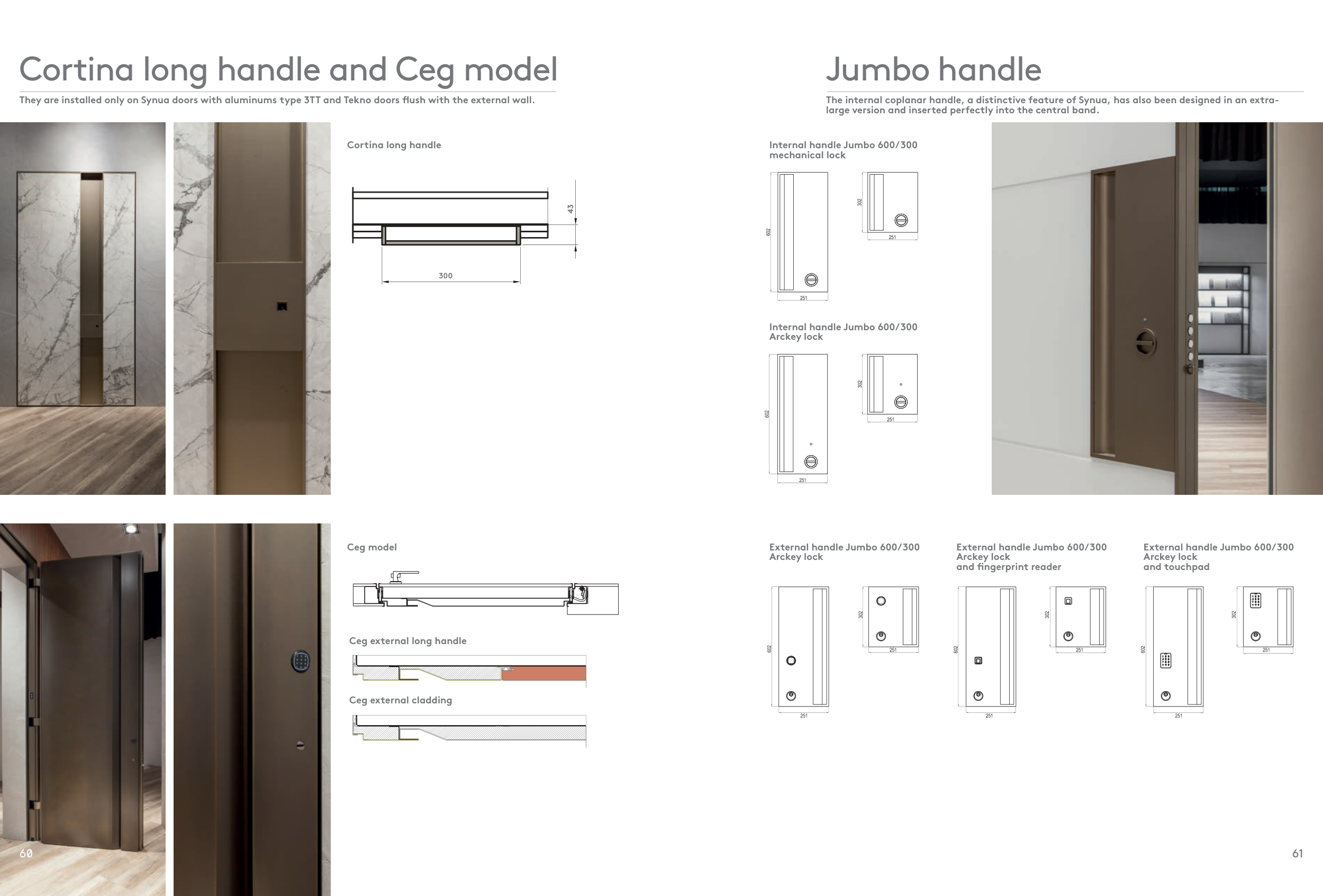 They are installed only on Synua doors with aluminums type 3TT and Tekno doors flush with the external wall.