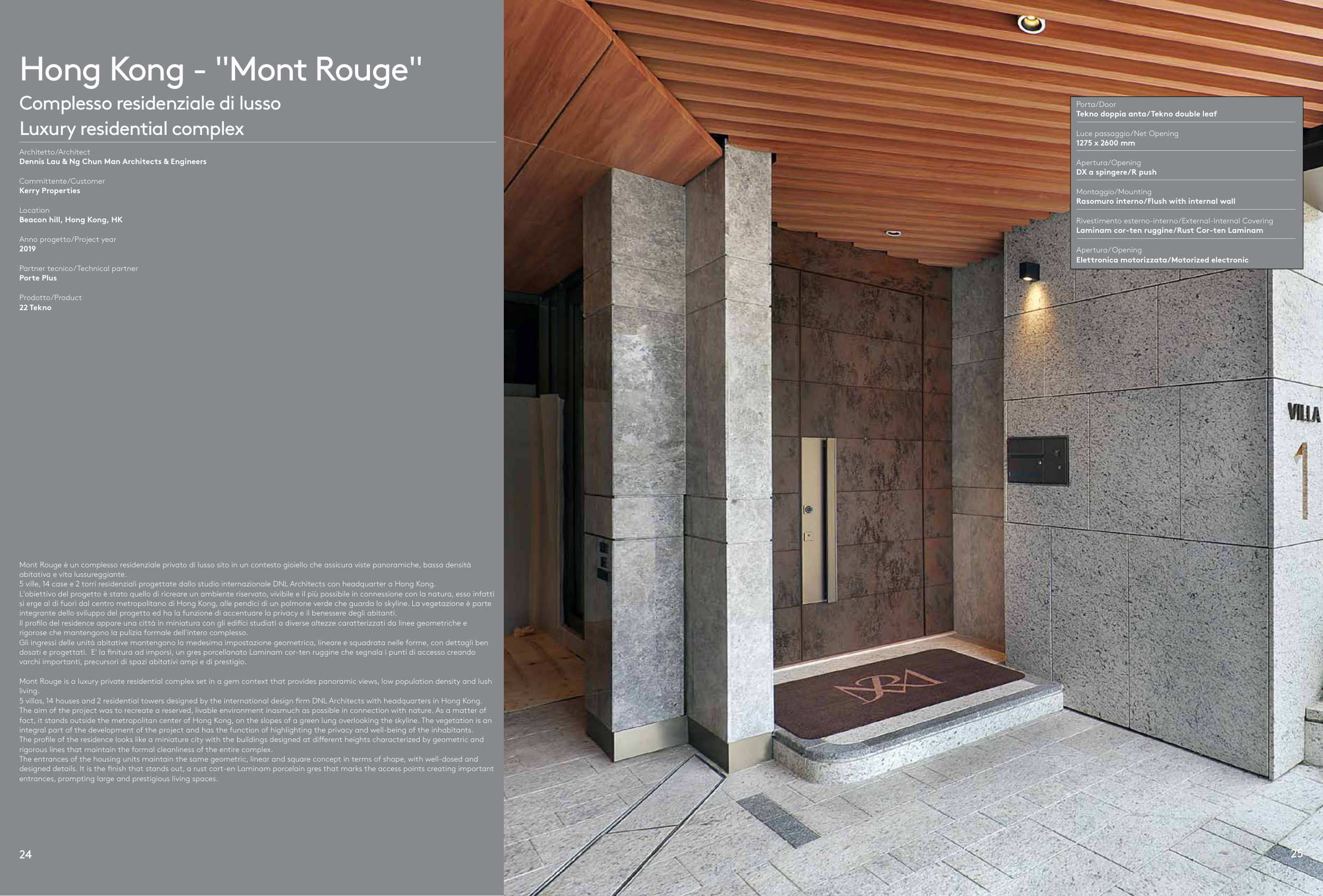 designed details. It is the finish that stands out, a rust cort-en Laminam porcelain gres that marks the access points creating important
