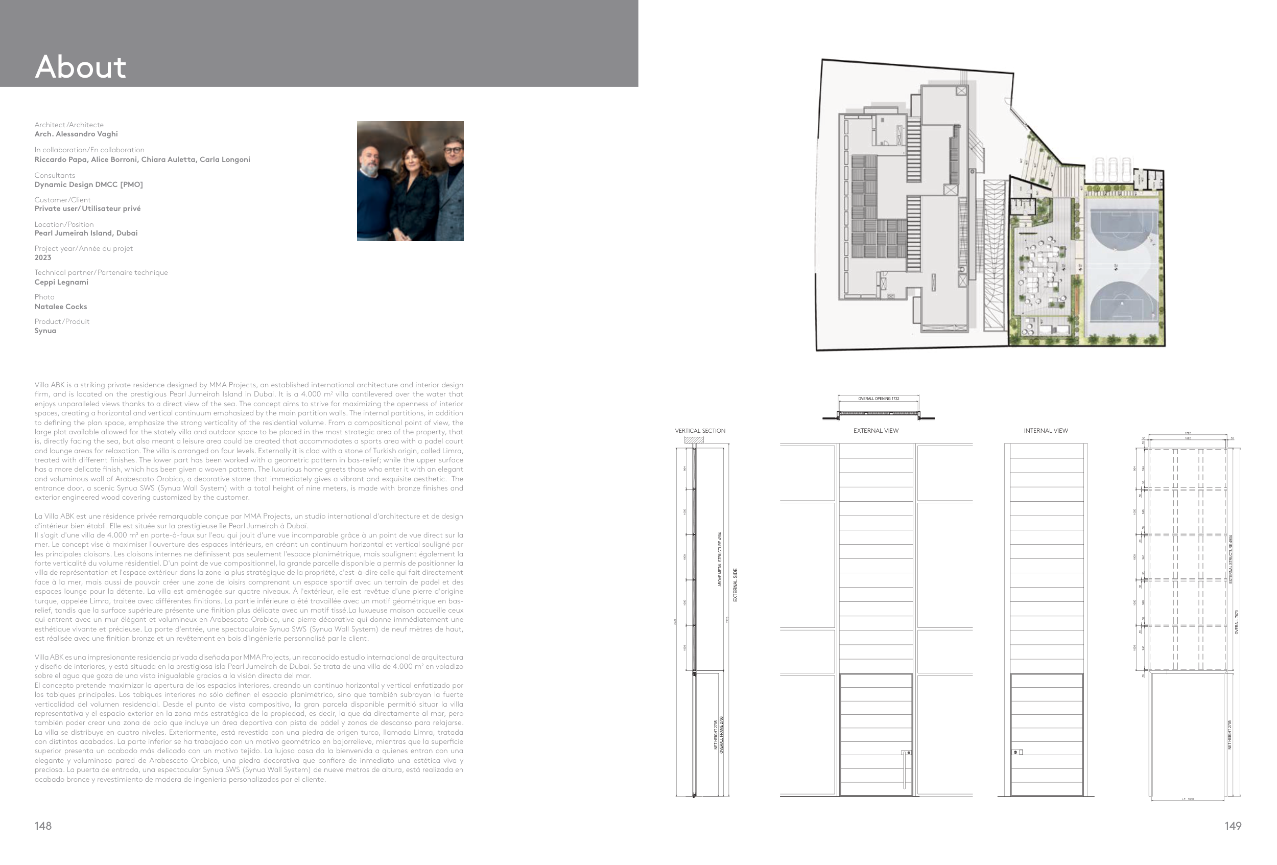 esthétique vivante et précieuse. La porte d'entrée, une spectaculaire Synua SWS (Synua Wall System) de neuf mètres de haut,