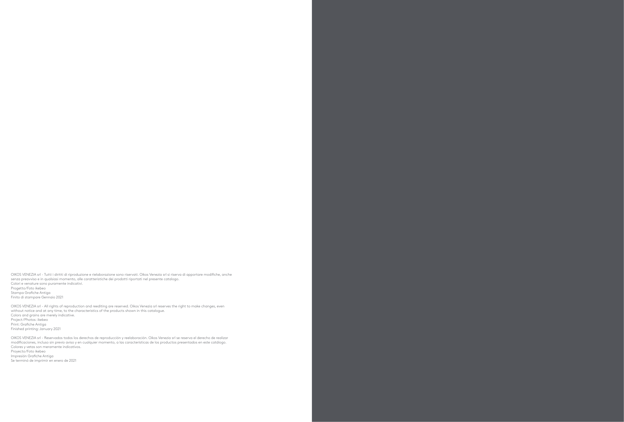 OIKOS VENEZIA srl - All rights of reproduction and reediting are reserved. Oikos Venezia srl reserves the right to make changes, even