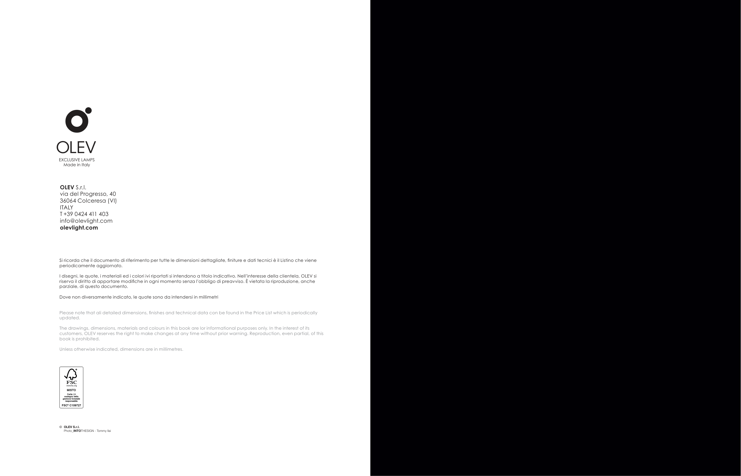 I disegni, le quote, i materiali ed i colori ivi riportati si intendono a titolo indicativo. Nell’interesse della clientela, OLEV si