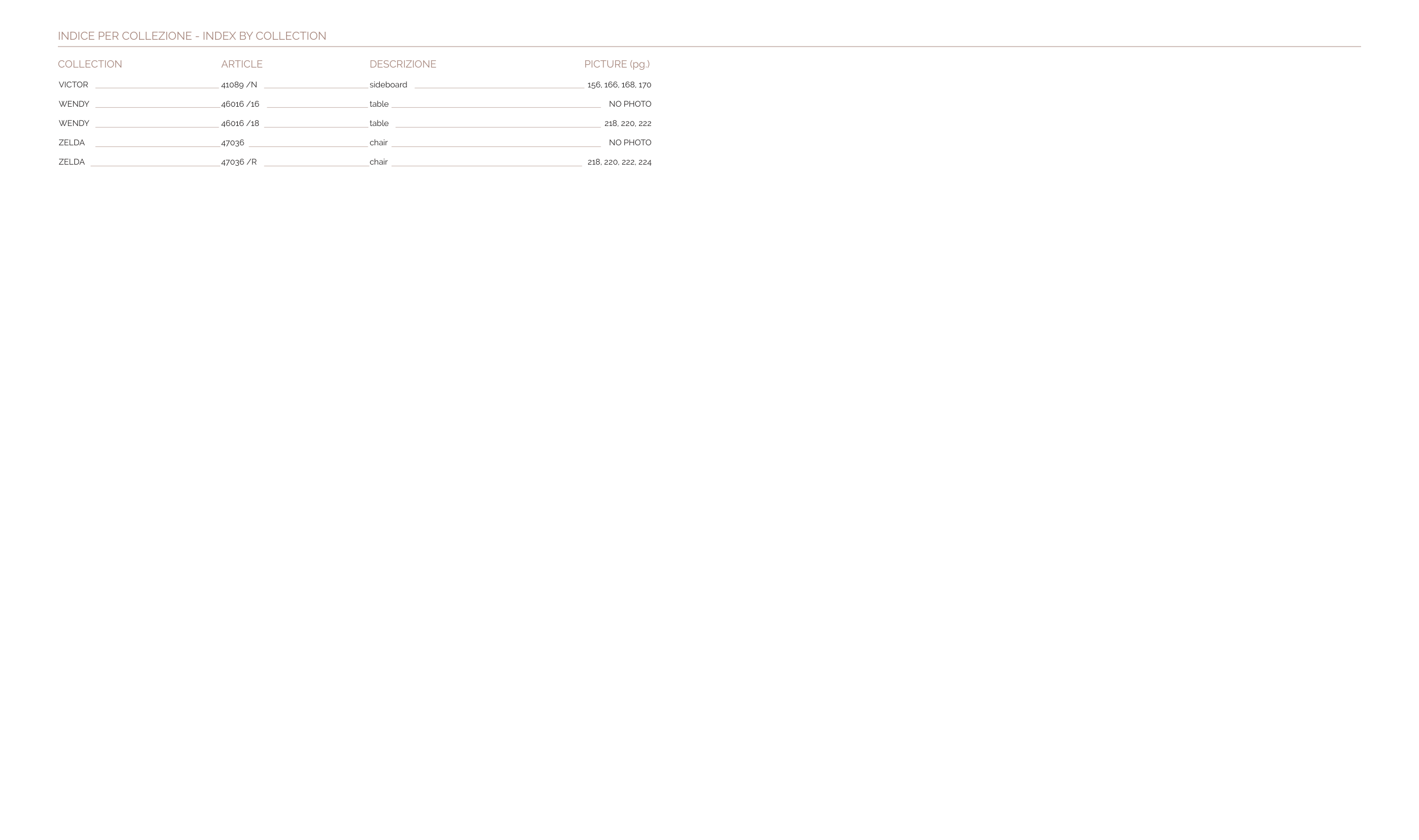 INDICE PER COLLEZIONE - INDEX BY COLLECTION
