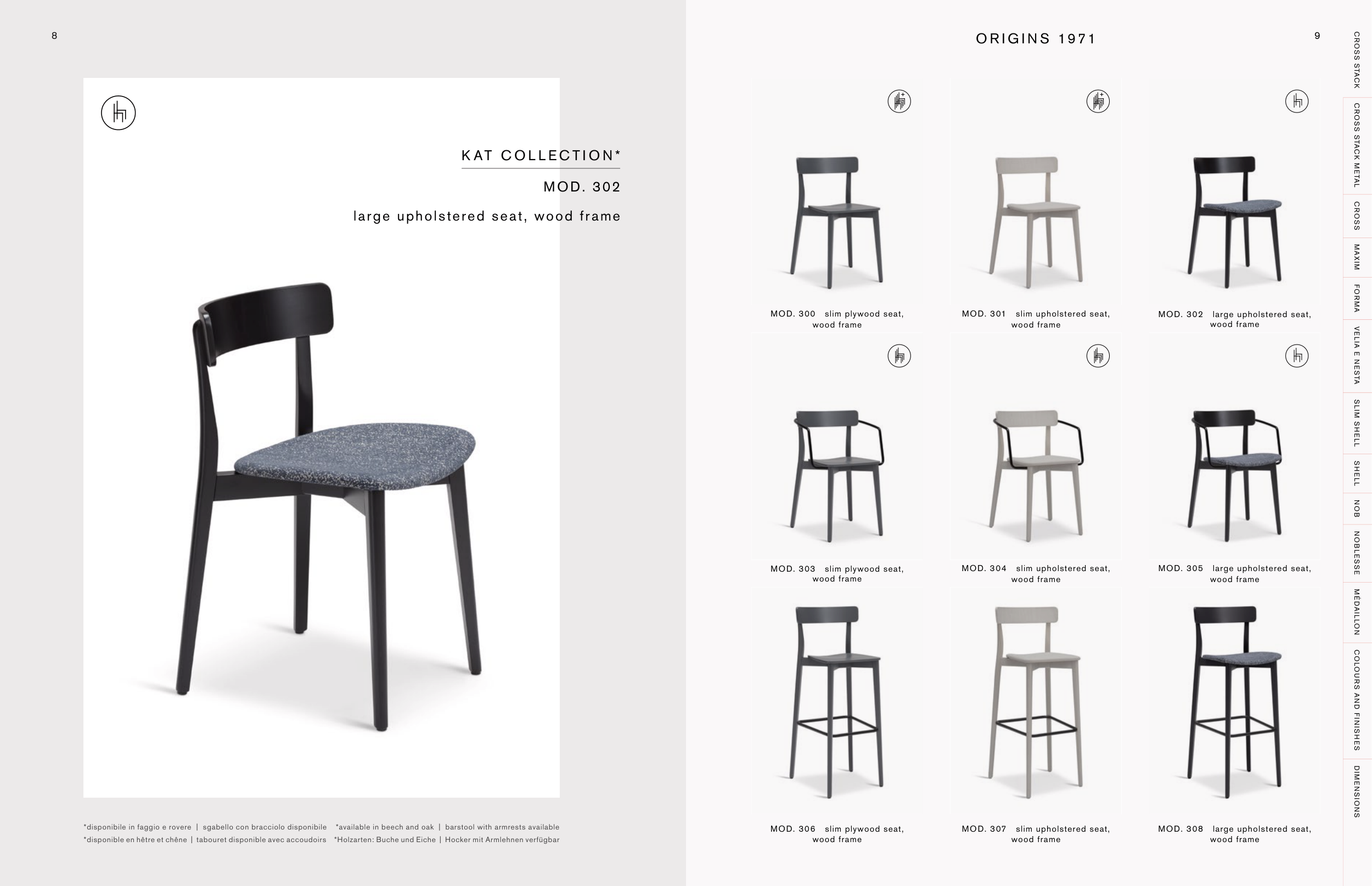 *disponibile in faggio e rovere | sgabello con bracciolo disponibile *available in beech and oak | barstool with armrests available