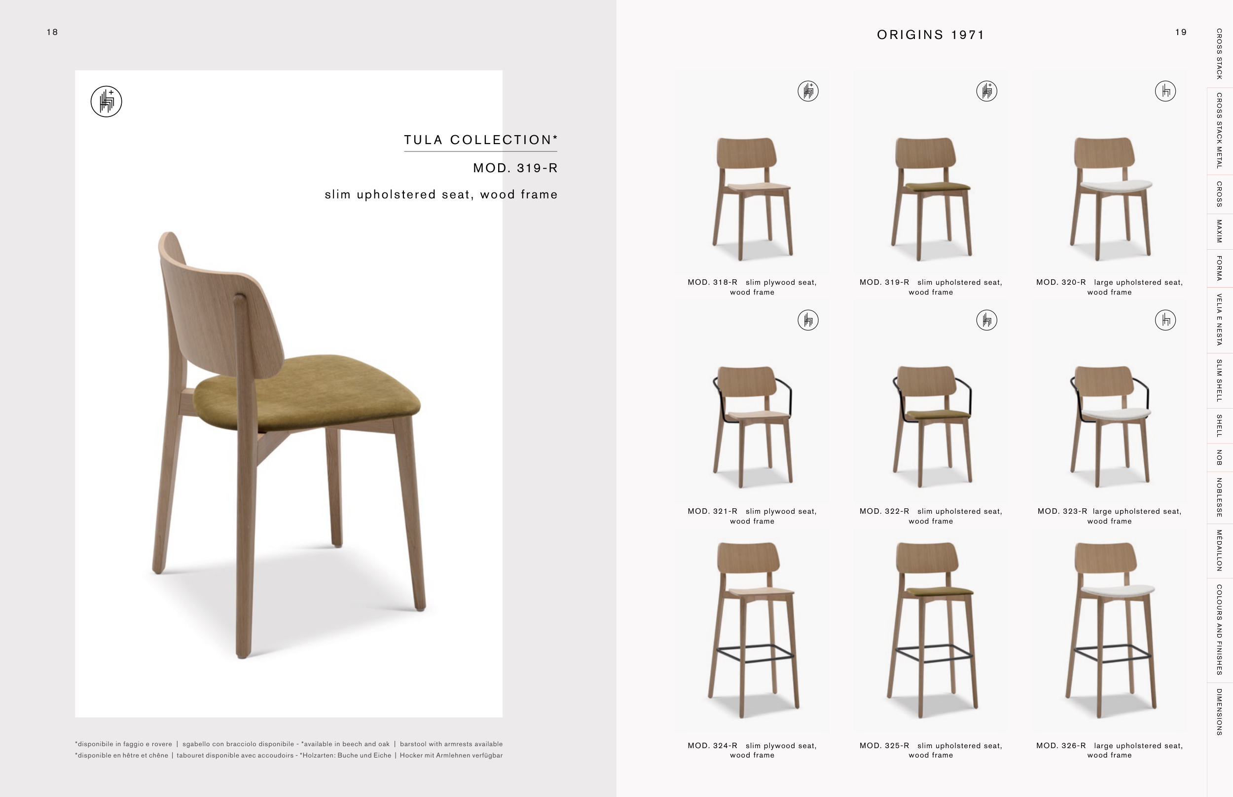 *disponibile in faggio e rovere | sgabello con bracciolo disponibile - *available in beech and oak | barstool with armrests available