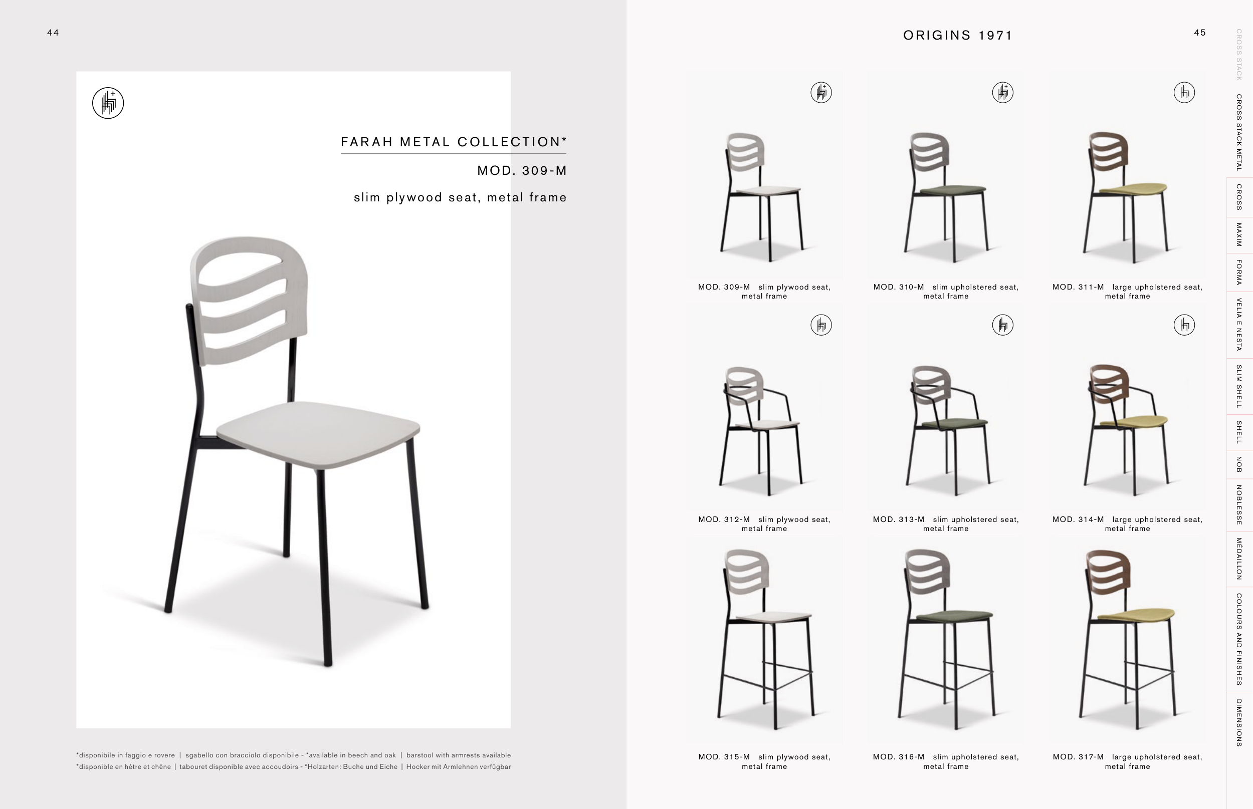 *disponibile in faggio e rovere | sgabello con bracciolo disponibile - *available in beech and oak | barstool with armrests available