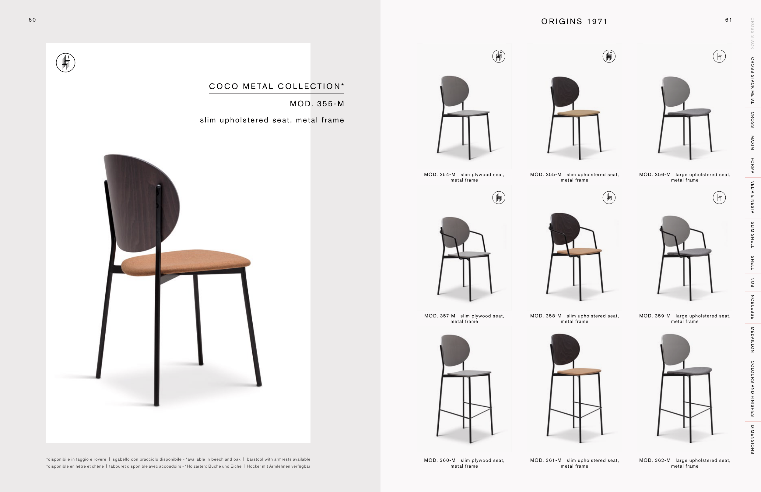 *disponibile in faggio e rovere | sgabello con bracciolo disponibile - *available in beech and oak | barstool with armrests available