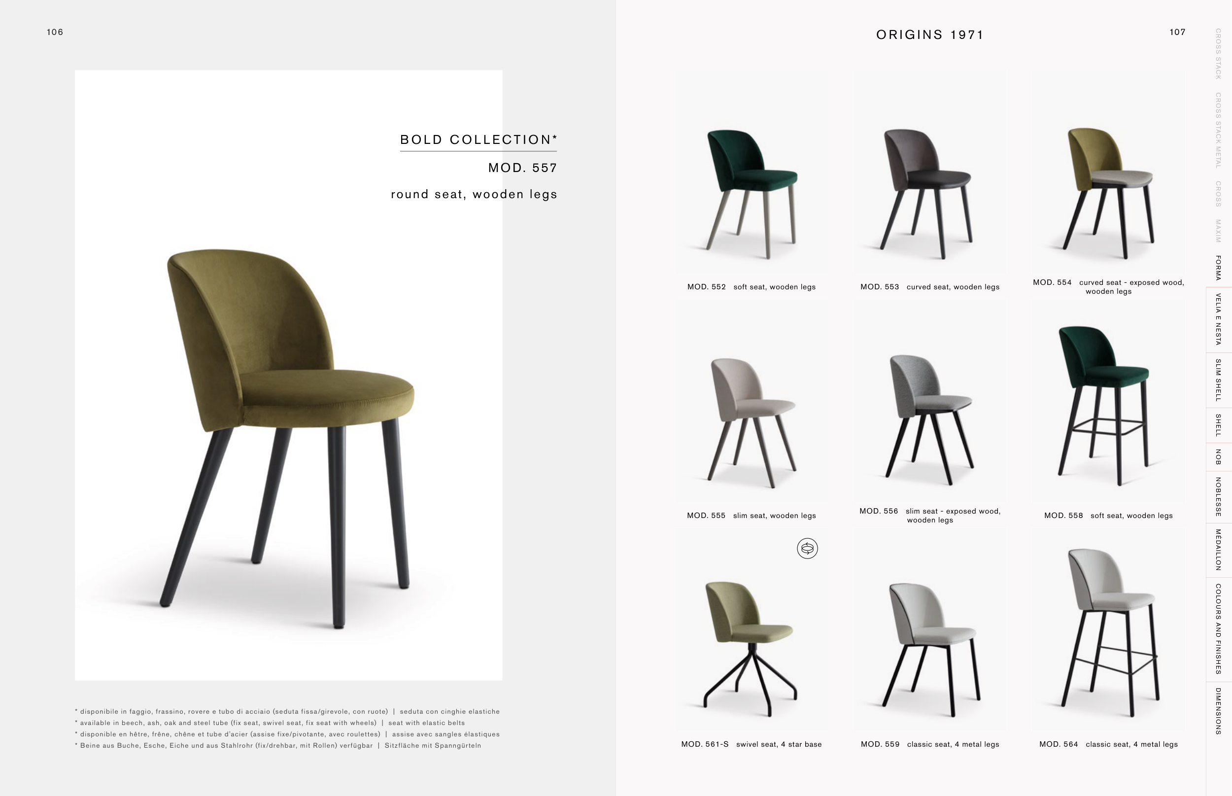 MOD. 555 slim seat, wooden legs