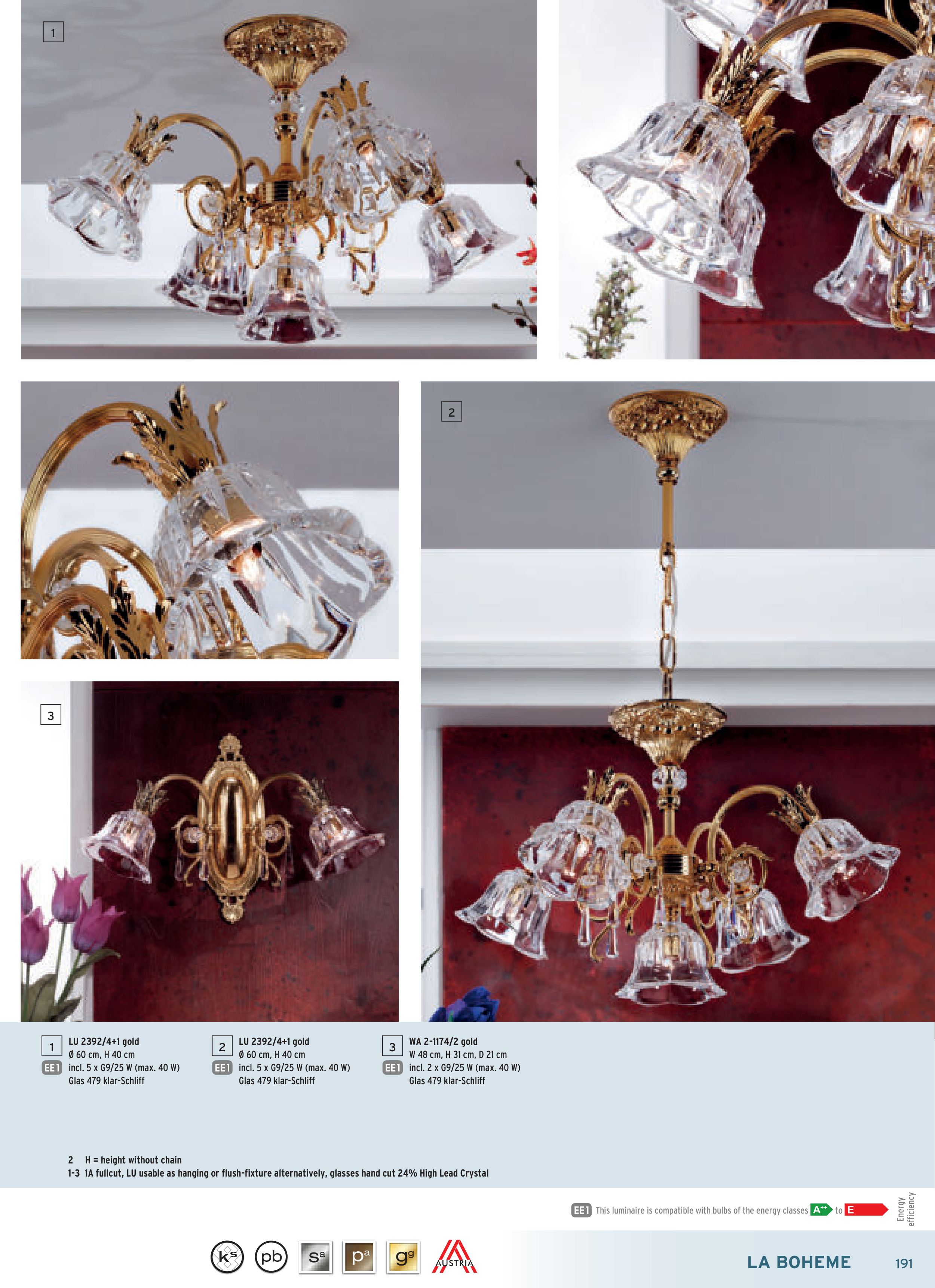 1-3 1A fullcut, LU usable as hanging or flush-fixture alternatively, glasses hand cut 24% High Lead Crystal