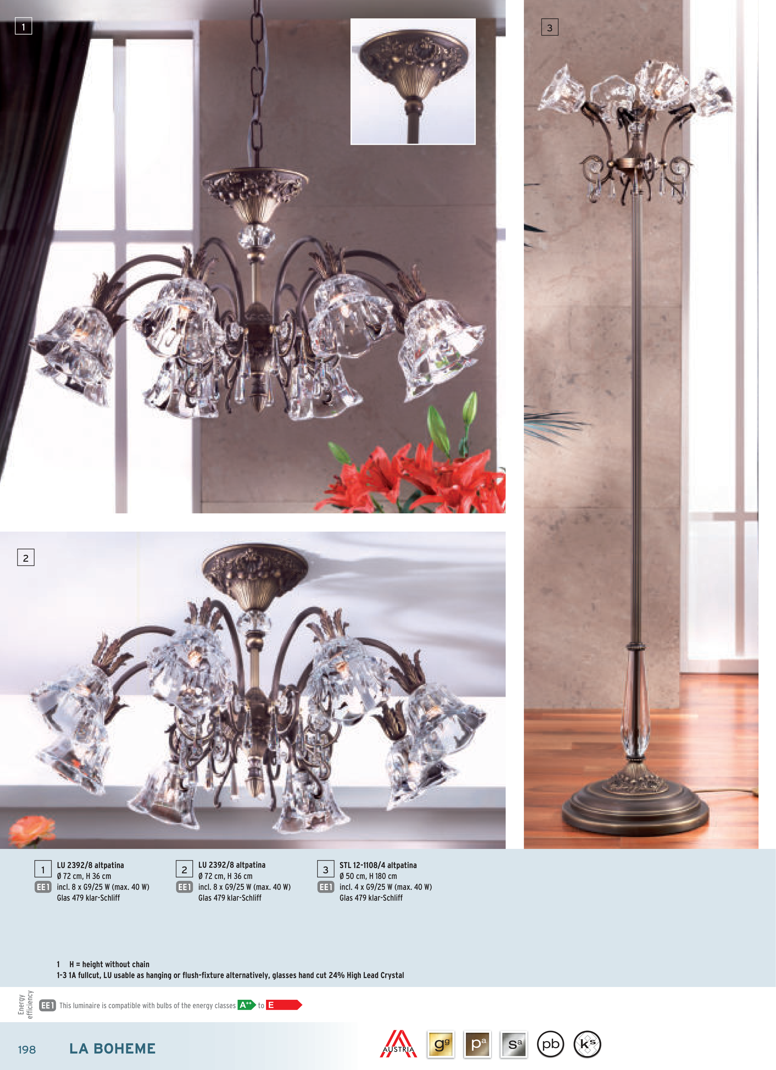 1-3 1A fullcut, LU usable as hanging or flush-fixture alternatively, glasses hand cut 24% High Lead Crystal