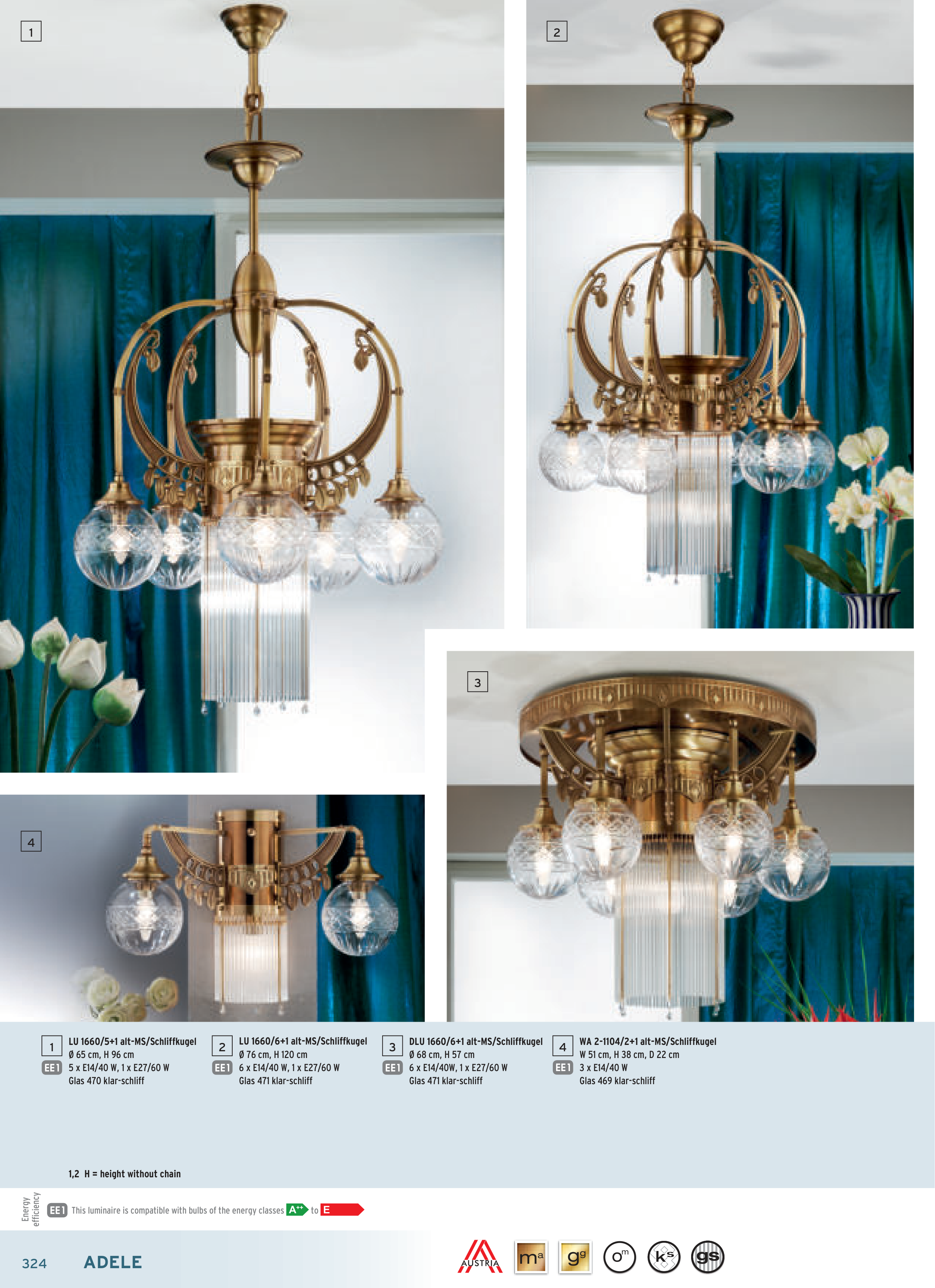 6 x E14/40W, 1 x E27/60 W