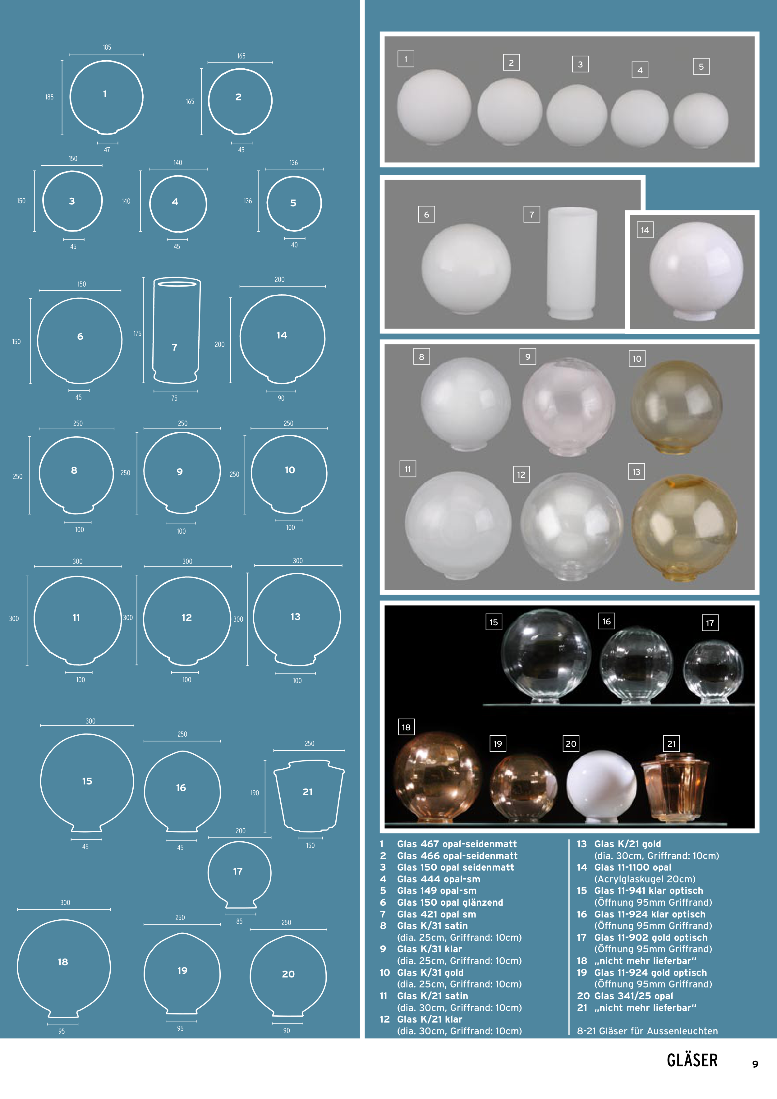 8-21 Gläser für Aussenleuchten