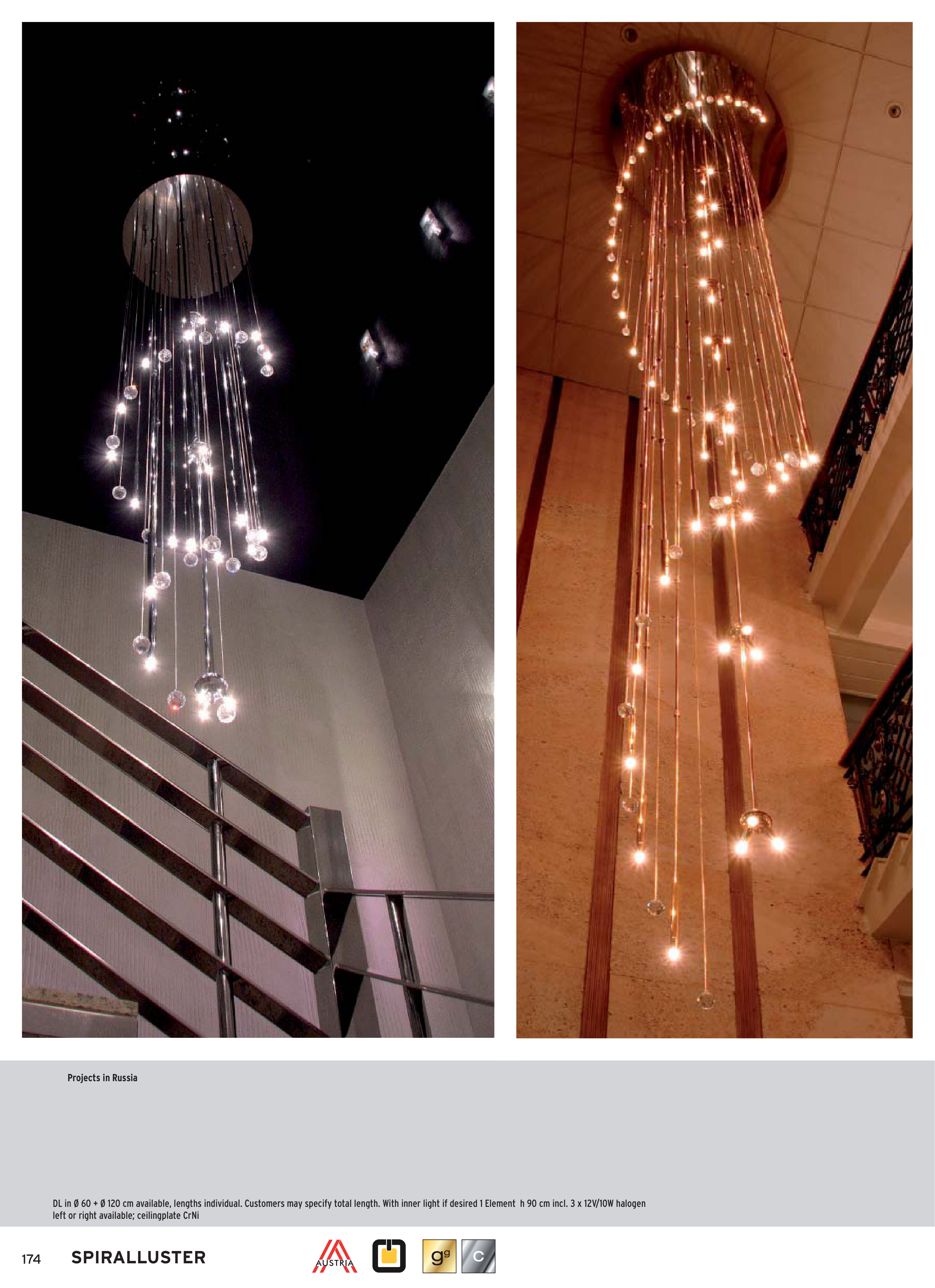 DL in Ø 60 + Ø 120 cm available, lengths individual. Customers may specify total length. With inner light if desired 1 Element h 90 cm incl. 3 x 12V/10W halogen
