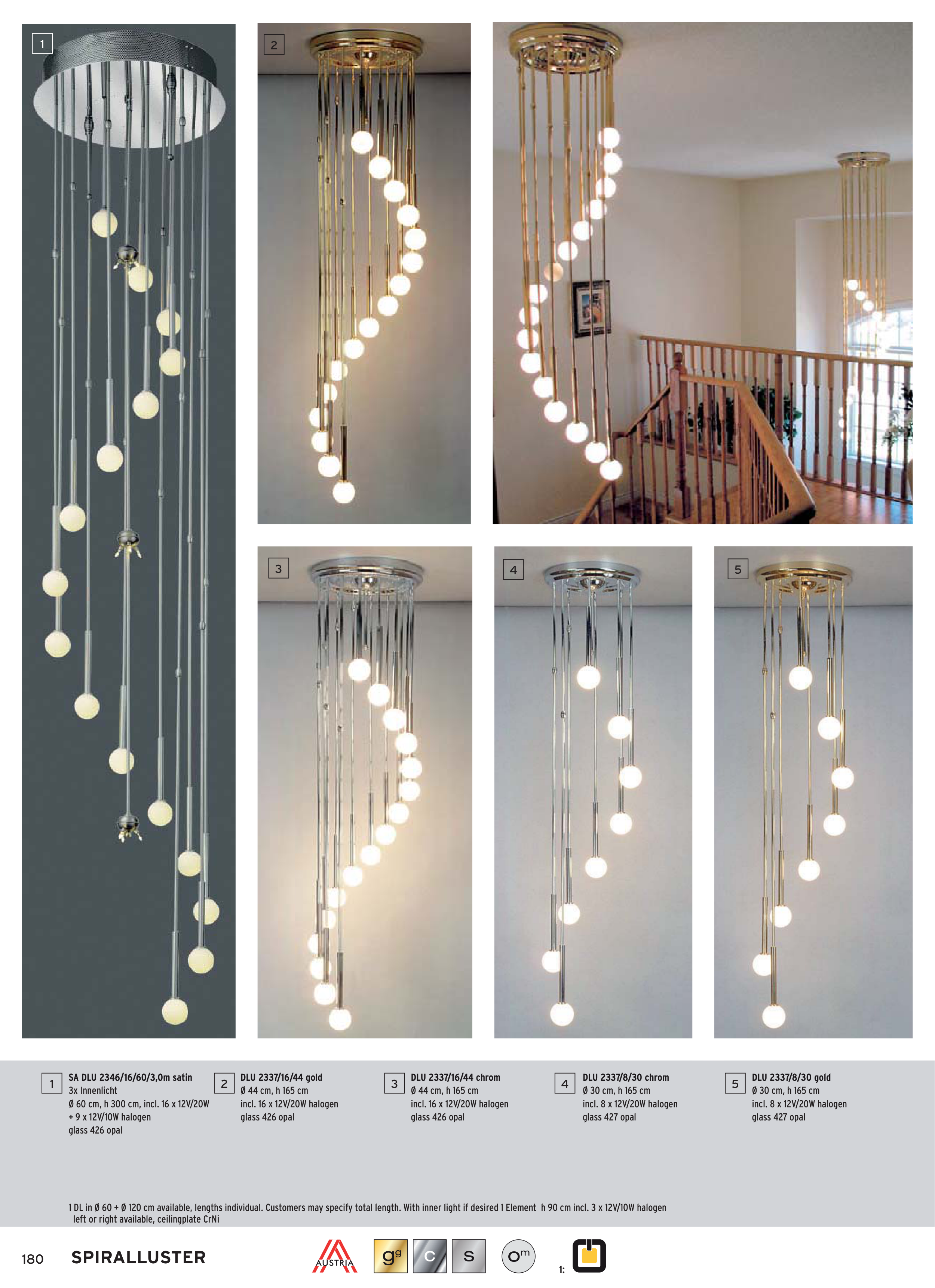 1 DL in Ø 60 + Ø 120 cm available, lengths individual. Customers may specify total length. With inner light if desired 1 Element h 90 cm incl. 3 x 12V/10W halogen