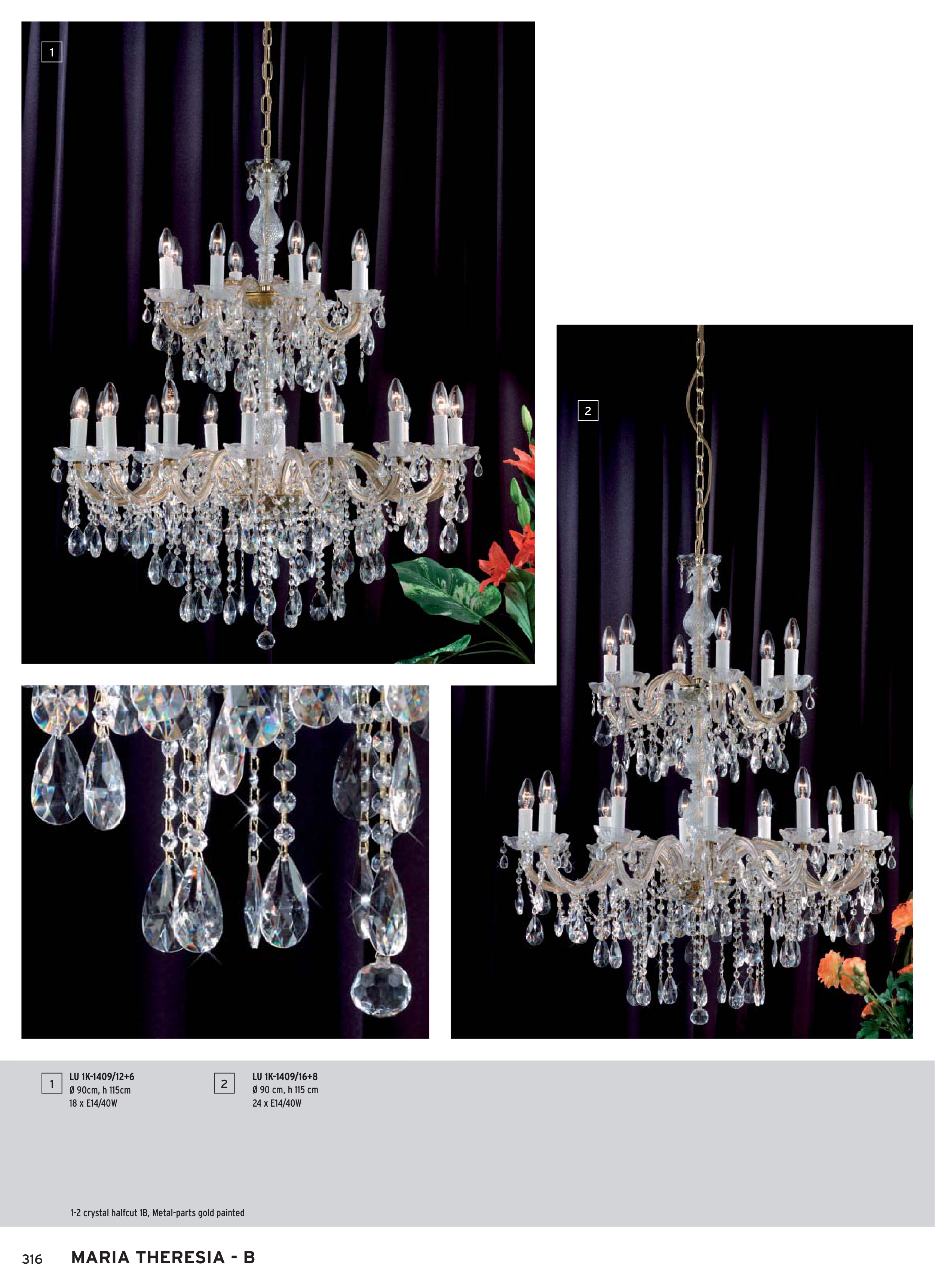 1-2 crystal halfcut 1B, Metal-parts gold painted